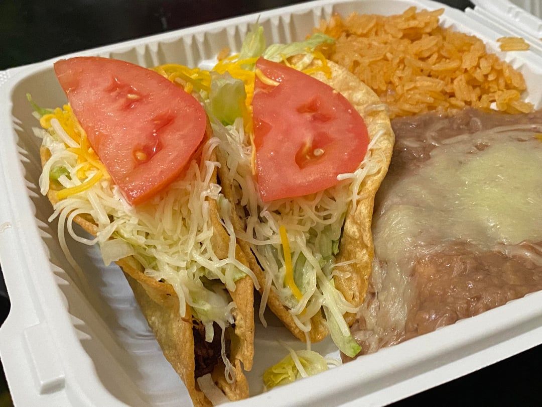 Al Pastor & the California Classic #2 crispy shredded beef w/ cold tomato and cheddar cheese.