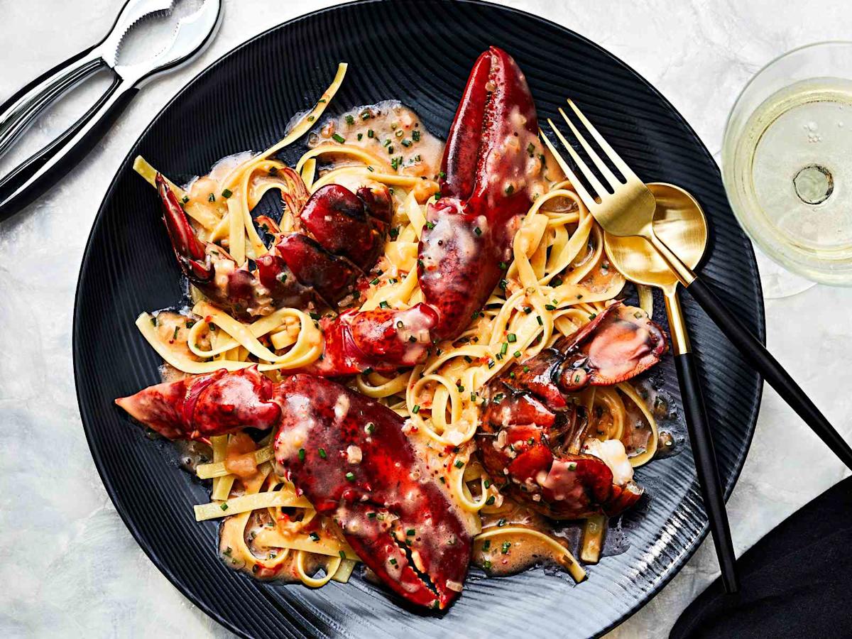 “Be sure to serve the lobsters on a warmed large platter so the beurre blanc stays hot,” says former F&W editor Mary-Frances Heck. “I love to line the platter with hot cooked linguine before topping it with the roasted lobsters and lemony sauce. The pasta soaks up some of the sauce and makes for a decadent second course once all the lobsters have been eaten.”