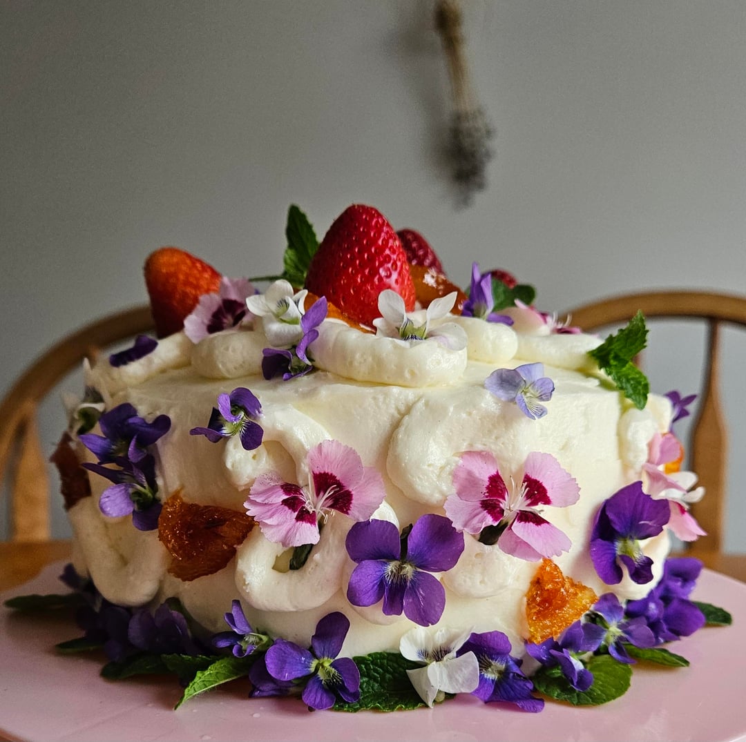 sisumeraki 24 hours ago I’m in love with this cake, it’s sooo cute! The purple violets look beautiful with the lemon curd.