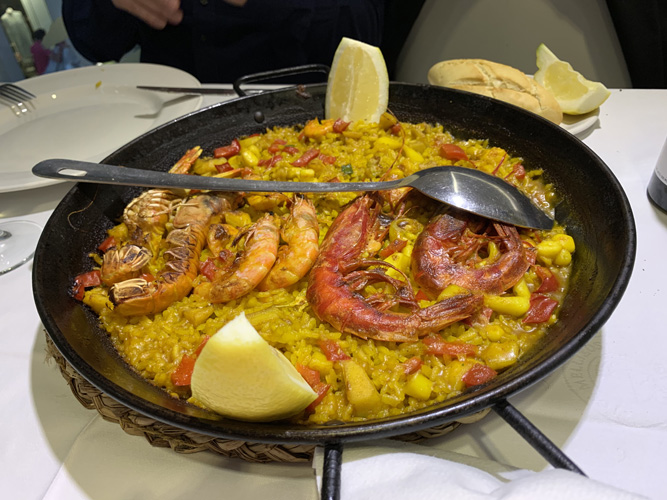 I prefer paella de mariscos – seafood paella – which I would assert is equally authentic, and today perhaps even more popular. On a recent visit to Malaga, a seaside city about 300 miles south of Valencia, I set out to find the best possible version of this dish.