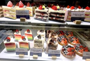 The French-Asian inspired bakery features a menu filled with cakes, pastries, and breads as well as savory items such as sandwiches, wraps, salads, and more.