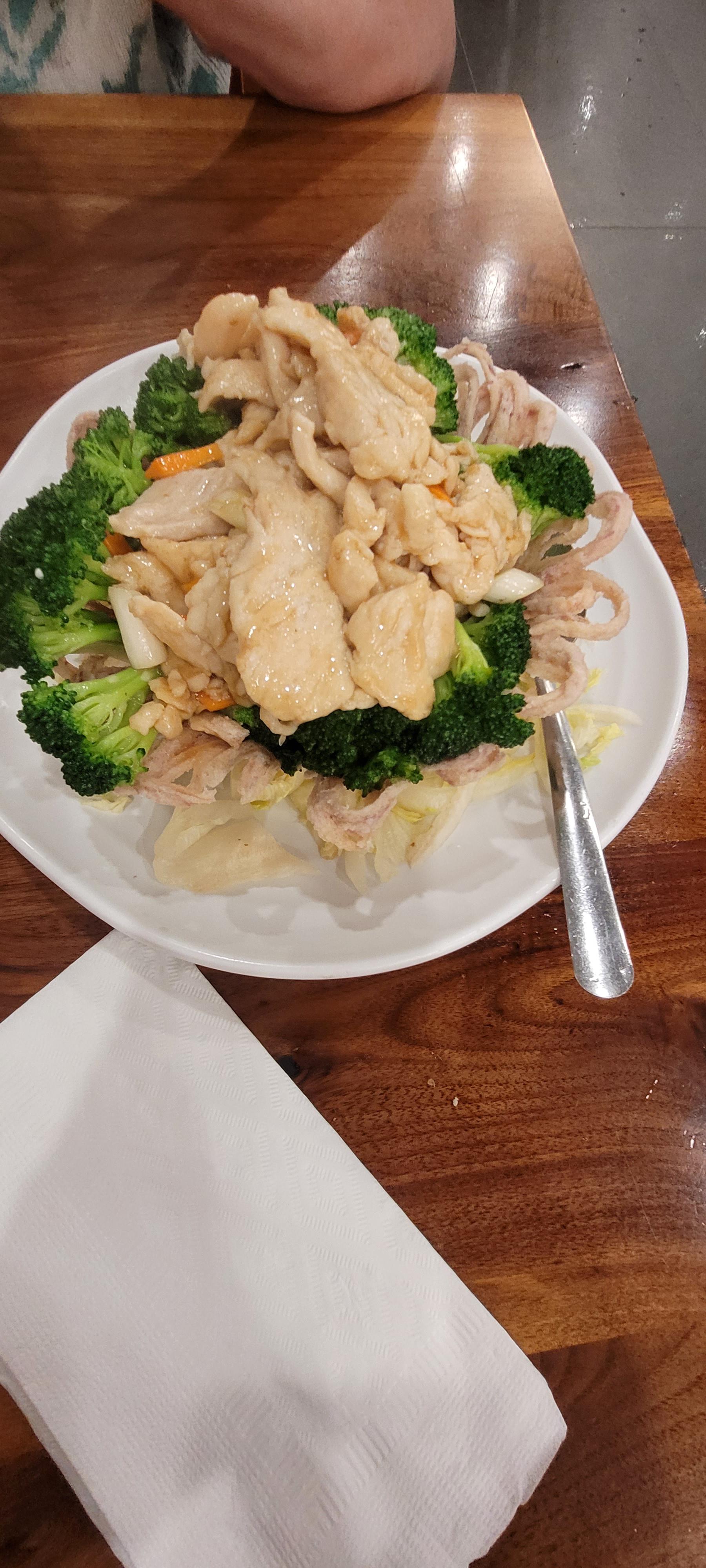 It haven't seen this dish at other cantonese restaurants. The basket is made with taro, very crispy and nice. This one is with white meat chicken but we usually get it with seafood.