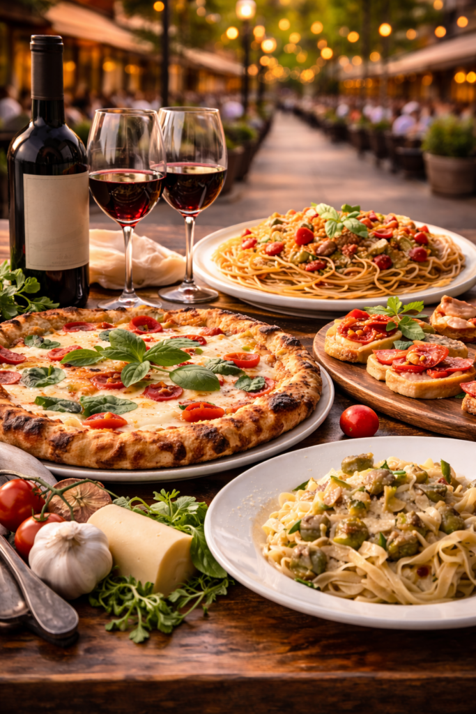 Stella’s Cucina offers fresh handmade pasta in a modern setting, Basta focuses on wood-fired Italian dishes with a contemporary twist, and Pasta Jay’s remains a popular spot for casual dining and generous portions.