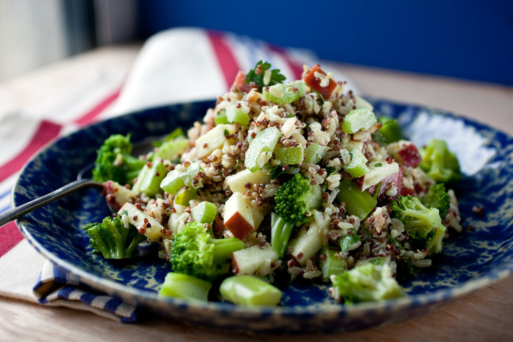For a salad to make a meal, it should contain something more substantial, like grains, beans or potatoes, or protein-rich ingredients like cheese, fish or eggs. Poach an egg, place it atop a generous serving of frisée salad tossed with croutons, herbs and a tart vinaigrette, and you’ve got lunch or a light dinner. A spinach salad with green beans can be transformed into a comforting and nourishing meal when warm potatoes tossed with vinaigrette and feta are added to the mix. I’ve made this mixed-grains salad using both regular brown rice and brown basmati rice. I like the lightness of the basmati brown rice, but I also enjoy the chewiness of regular brown rice.