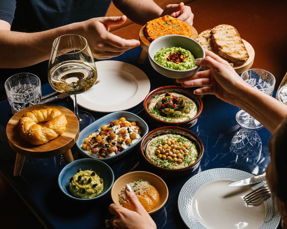 aged feta, watermelon and cantaloupe saladolive, tomato and za’atar hummuskale tabbouleh with caramelised goat’s cheese and Granny Smith applepotato shakshuka with smoked garlic yogurt and black garlic aiolitantuni on pide with isot aiolitahini piyaz with homemade meatballsentrecote döner bites with tomato sauce and garlic yoghurt diphomemade spicy sucuk, kashkaval cheese and egg yolk sourdough pidecouscous prawns with paprika butterliquid nitrogen Turkish maraş ice cream with a peanut butter cookie