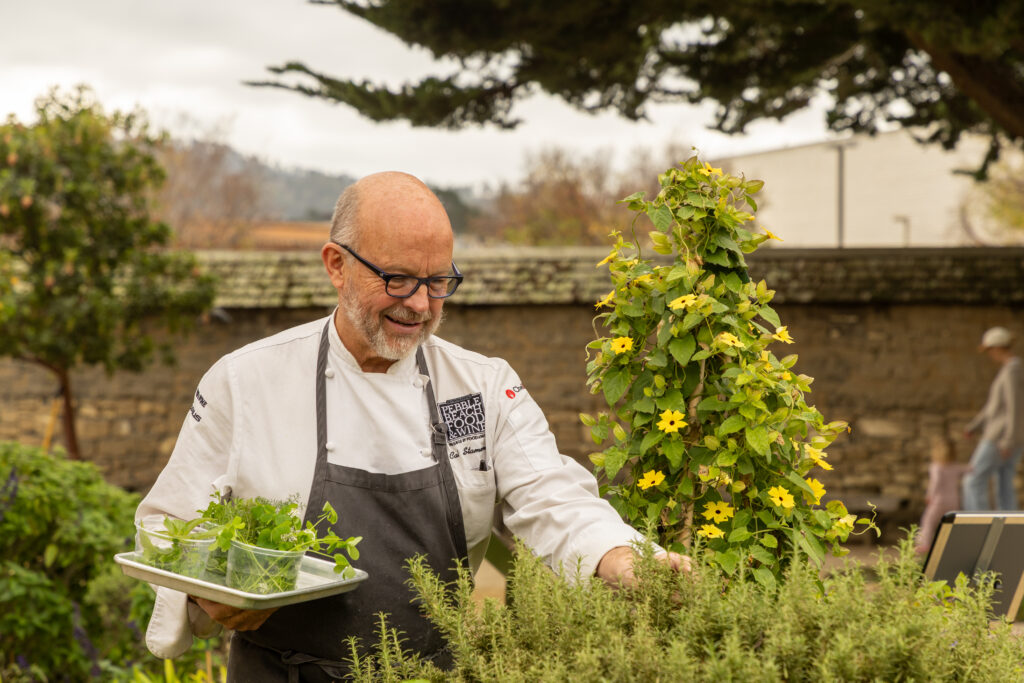 Stamenov in the Cella garden. His own expansive Carmel Valley orchard and growing beds also fed the kitchen, and will now be tended by friends and helpers while he’s away. (Photo: Patrick Tregenza)