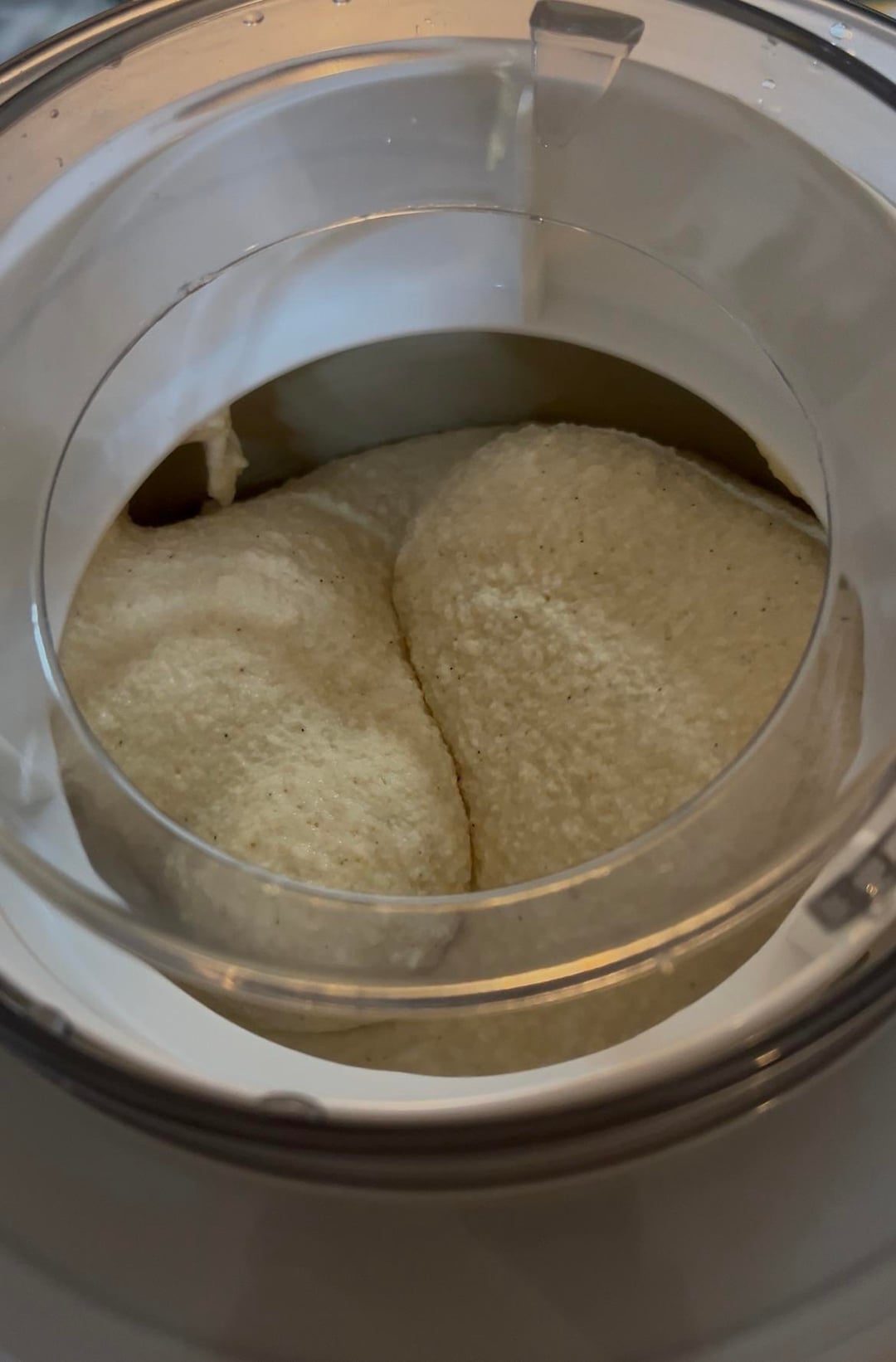 The issue is that when churning, I dont seem to get the thick and dense ice cream texture even past 20min mark. Still super soft consistency and looks a little but grainy (as seen from the pic). At 30min mark I stopped churning and the texture seemed better but the minute I scoop out to my container, it melts SUPER fast (I might try chillingmy container or turning on Aircon next time) that it lowkey looked abit liquidy. I put it in the freezer for 5-6 hours and the texture solidified abit more but it still had a icy mouthfeel, not close enough to storebought kind 🙁