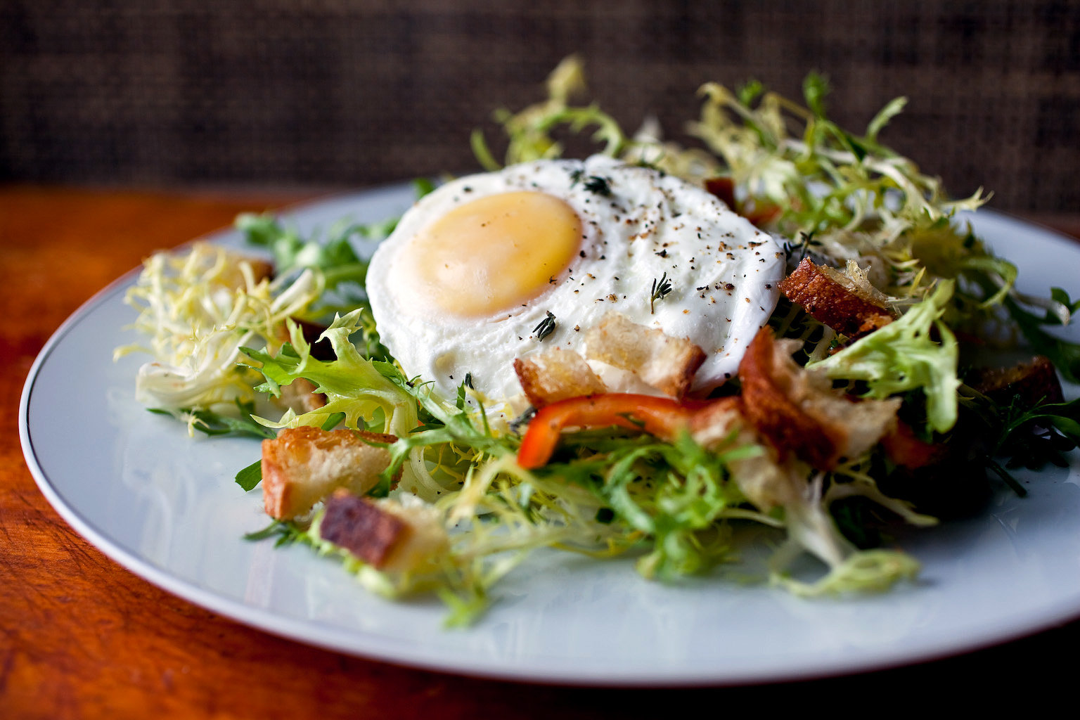 This is inspired by a classic French country salad. The traditional dish includes thick-cut bacon, but this version is great without the meat. You can serve it as a starter, but I like to make a meal of it.