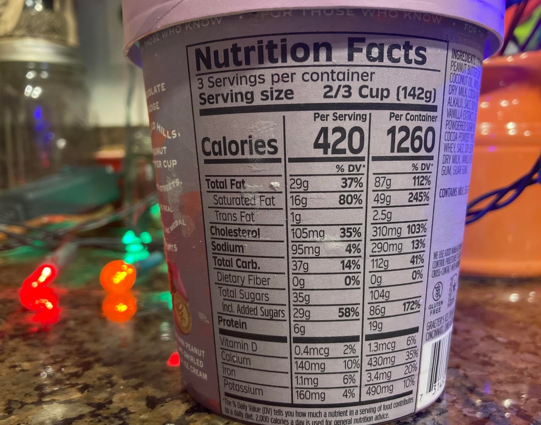 The Facts: 425g | 18% Butterfat | 1260 Calories (420 per 2/3 cup)