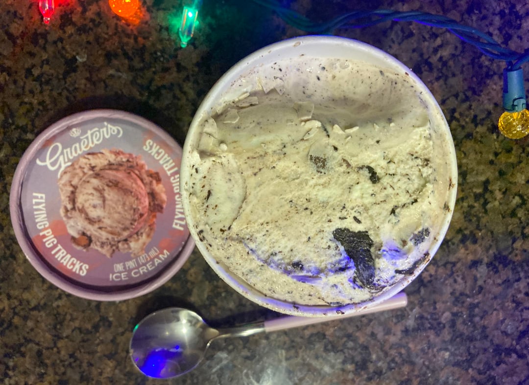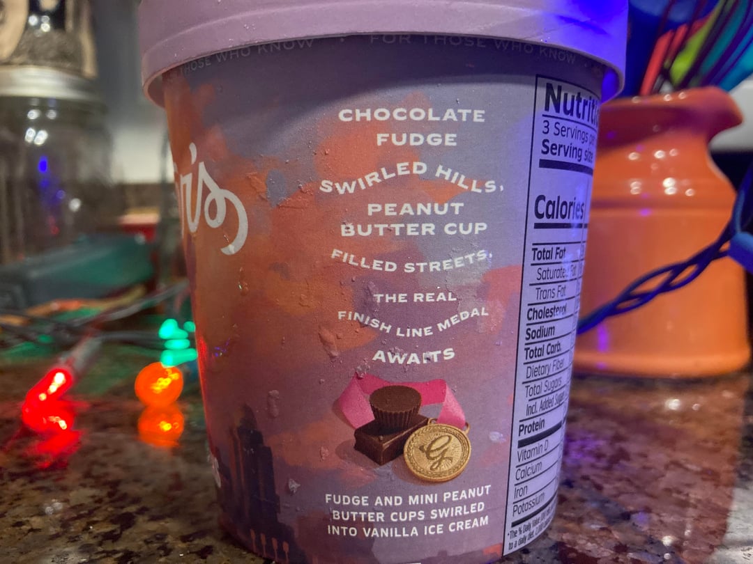The backstory: So what's the deal with Moose Tracks? I was clueless myself seeing this name at the grocery store, usually on store brands in Safeway and Kroger. A quick history gleaned online: This concept was created in 1988 by Wally and June Blume in Michigan’s Upper Peninsula and named for a mini golf course down the street from the first dairy to carry the flavor. What’s crazy is that something apparently started as a way to give the little guys an innovative combo to compete with Haagen-Dazs or Ben & Jerry's is now largely overtaken by corporate brands to jazz up their often soulless store-brand tubs. Instead of selling their own ice cream, the Blumes cashed in by creating Denali, which collects royalties and sells the key ingredient: the “Famous Moose Tracks Fudge.” Yet, some brands rebel and offer their own twist with a chosen animal. And the concept itself has widened beyond just vanilla base, that particular chocolate (a thick, proprietary fudge that doesn’t freeze solid) and the baby peanut butter cups. So, according to Google at least, “Tracks” has evolved into an industry shorthand for a specific textural experience: the contrast of a smooth base (and it doesn’t have to be vanilla), a hard candy (like a mini cup or nut) and a thick, rippled swirl. I haven’t tasted many of these tracks creations, but I have seen some interesting ones in my research. They seem to be a favorite of regional brands in particular, sometimes nodding to local wildlife or sporting team mascots. So let me know in the comments if you have a favorite Tracks flavor in your area. But back to Graeter’s. When it came time to create this flavor — introduced in 2023 to celebrate the 25th anniversary of the Flying Pig Marathon in Graeter’s home base of Cincinnati and release each April afterward — they decided to keep it simple with a nod to the original.