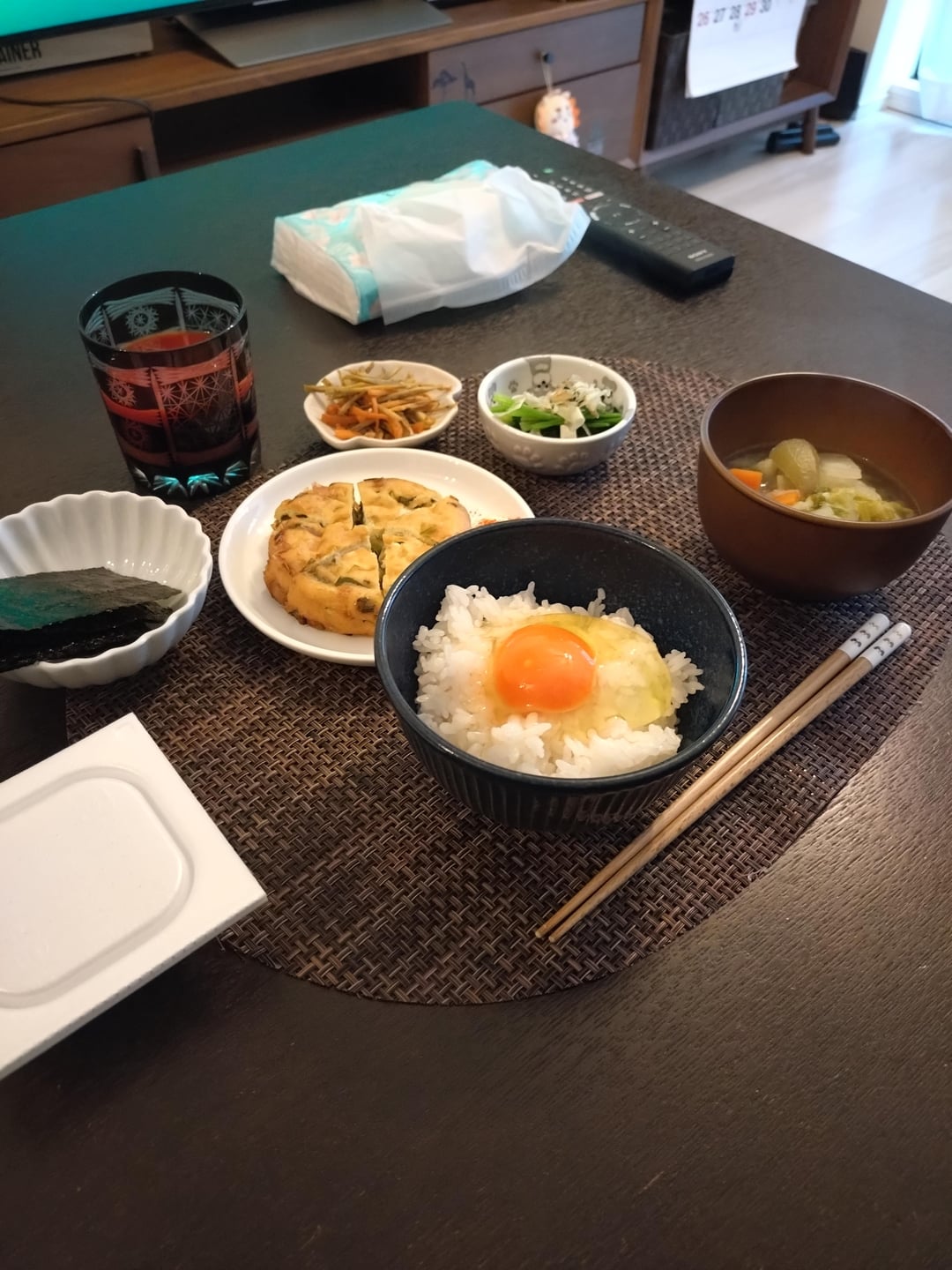 The ingredients in the miso soup are carrots, napa cabbage, green onions, and eggplant.