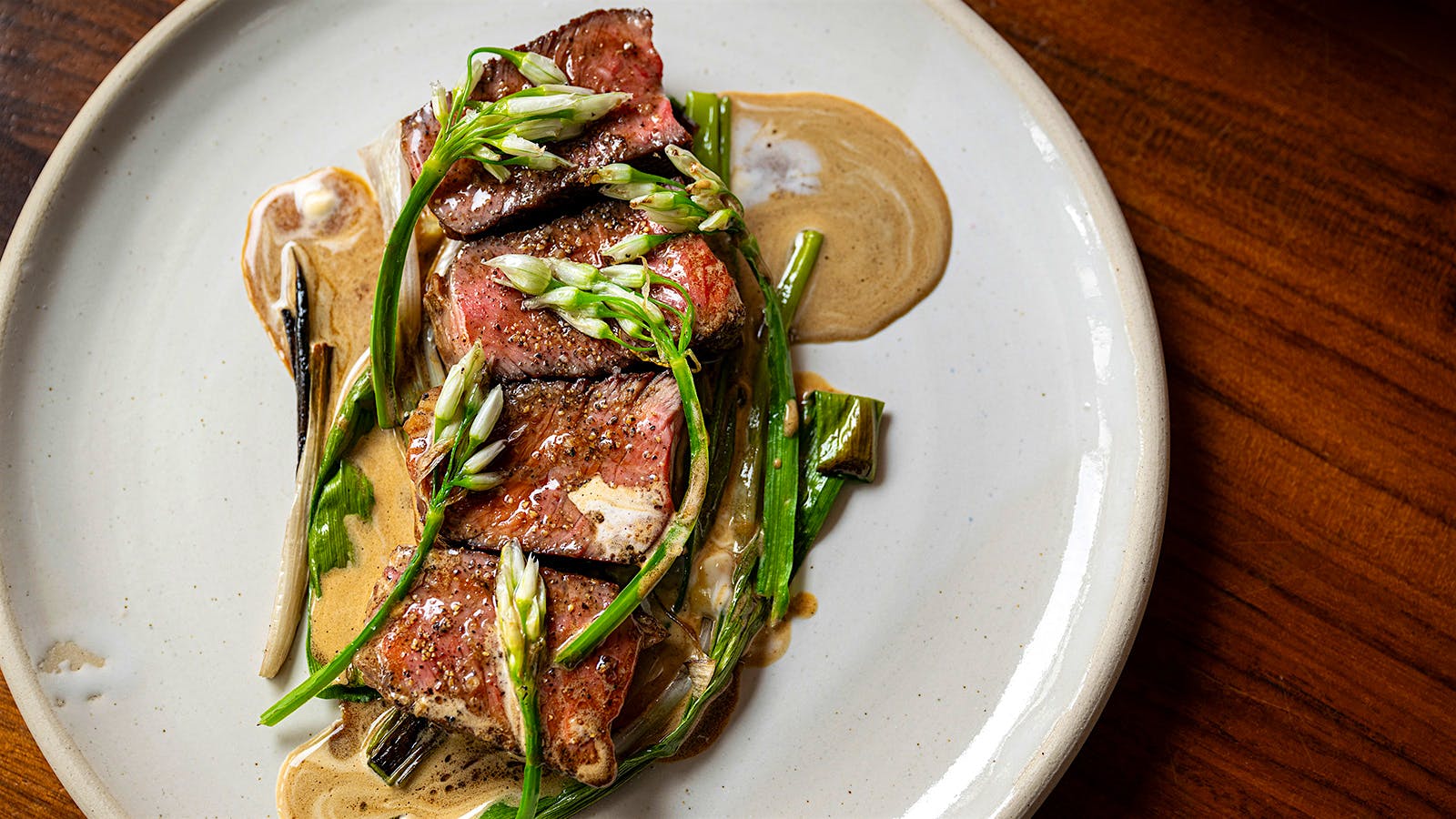 The menu: At Arthur, Kevin focuses on simple French dishes built on Northeastern ingredients with international inflections. Take the Maine scallops, inspired by Grand Award winner Le Bon Georges, grilled over charcoal and served in dashi with seared Tokyo turnips. Other menu highlights include steak from New York’s Highland Hollow Farm—scattered with onion flowers—and house-made brioche with cultured butter. (Mirzoeff uses that same bread in the restaurant’s signature brioche martini, fat-washed with butter and accented with nutty barley tea.)
