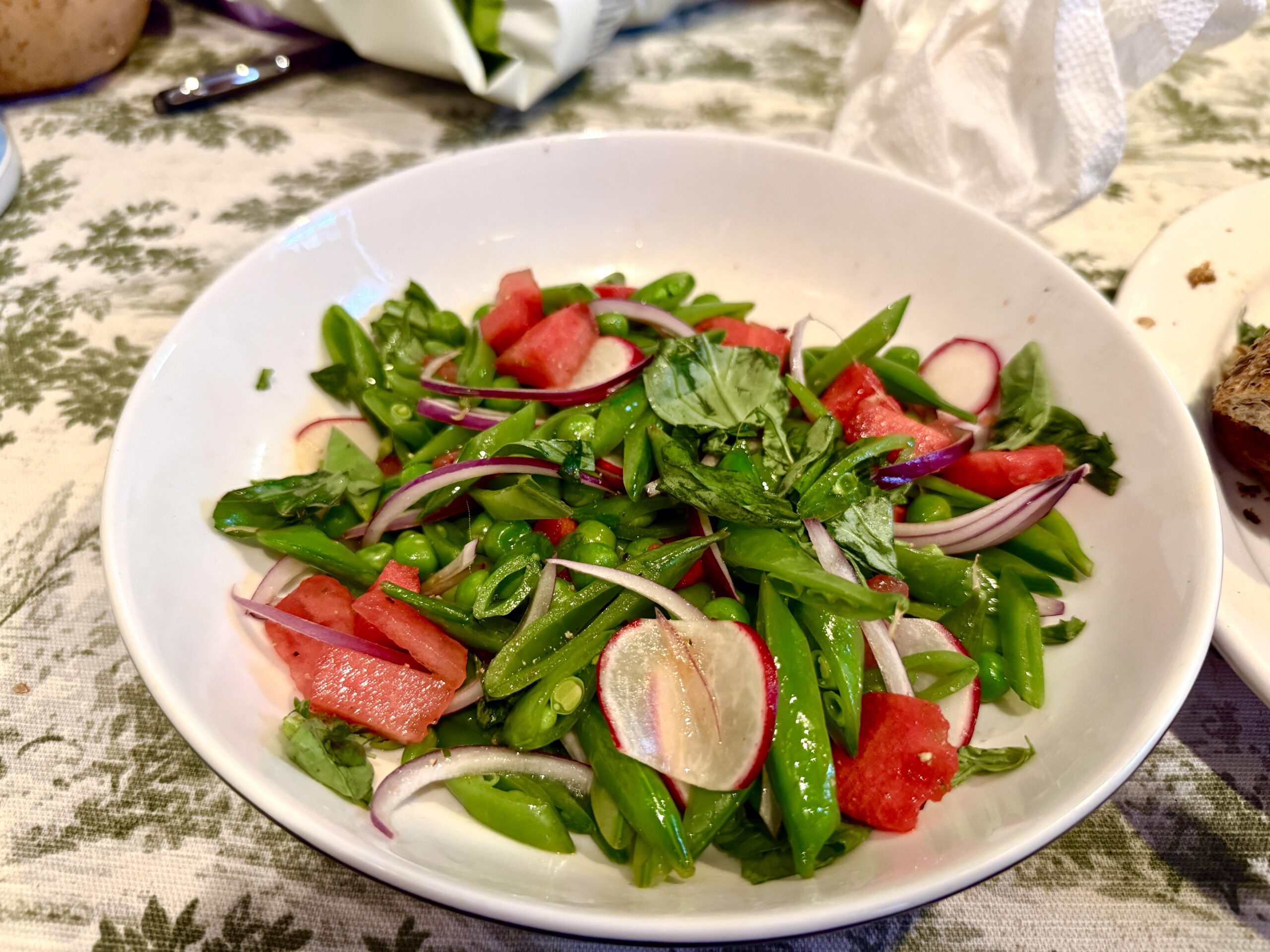 Spring Salad – Sugar Peas, Radish, Red Onion, Watermelon, Basil, Lemon, Olive Oilby Glizzys4everyone Dining and Cooking