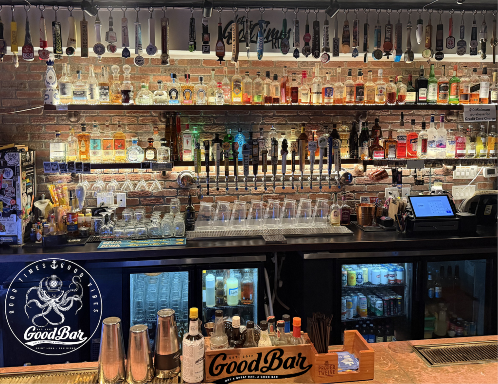 Both born and raised in Point Loma, they raised their family in Temecula until 2017 when they decided to come home—landing about two minutes away from GoodBar. Needless to say, they were frequent visitors, Fonda laughs. Buying a bar wasn’t exactly part of their retirement plan, especially after the pandemic. But one night, she and Kersey discussed the possibility of buying a place (Fonda’s an event planner, and Kersey has bar and hospitality experience).
