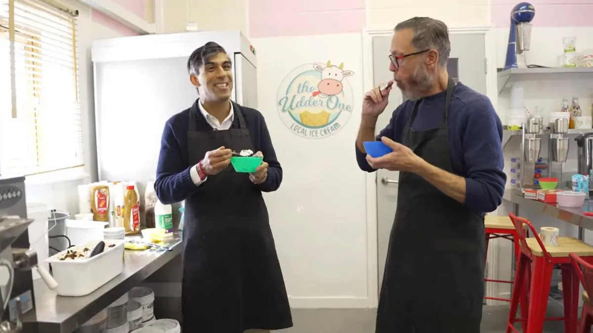 Finally, it’s time for the taste test. Sunak calls the ice cream combination “better than I thought.”