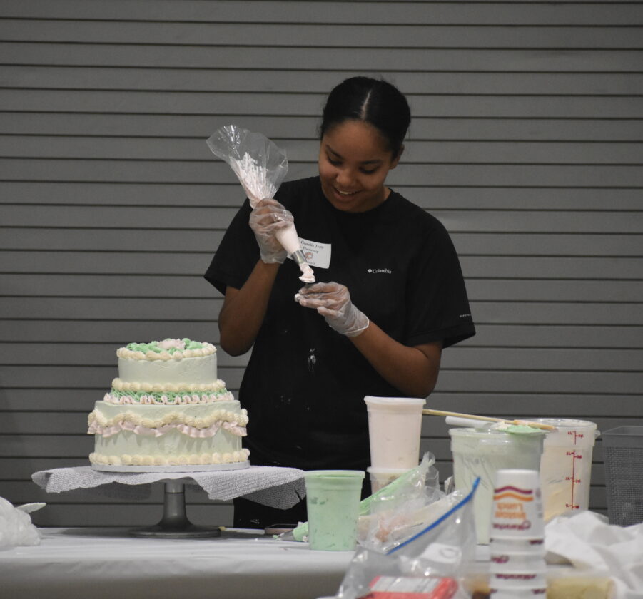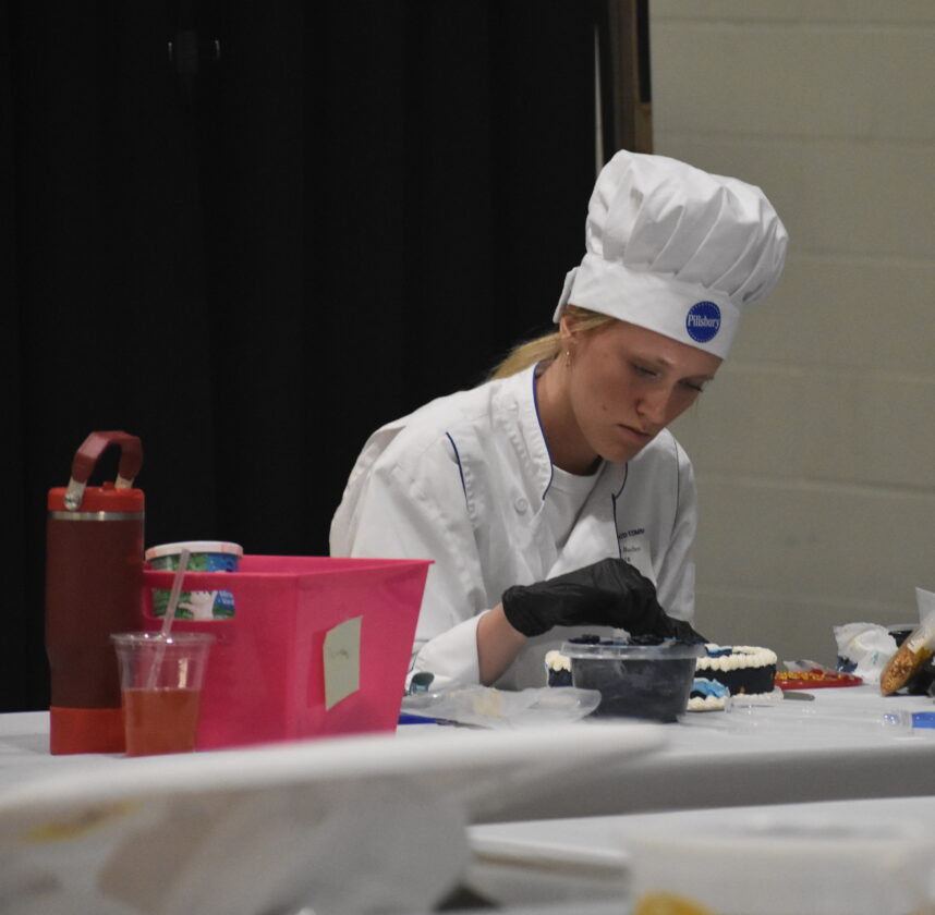 Photo by Samantha Davis: Marshall’s Autumn Deutz works on decorating her cake at the Southwest West Central Service Cooperative’s annual culinary skills challenge on Thursday in Marshall.