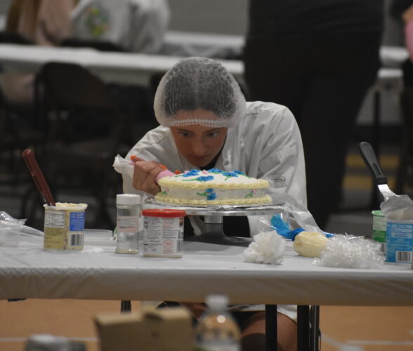 Photo by Samantha Davis: Camilla Terry of Harrisburg, South Dakota, works on decorating her cake at the Southwest West Central Service Cooperative’s annual culinary skills challenge on Thursday in Marshall.
