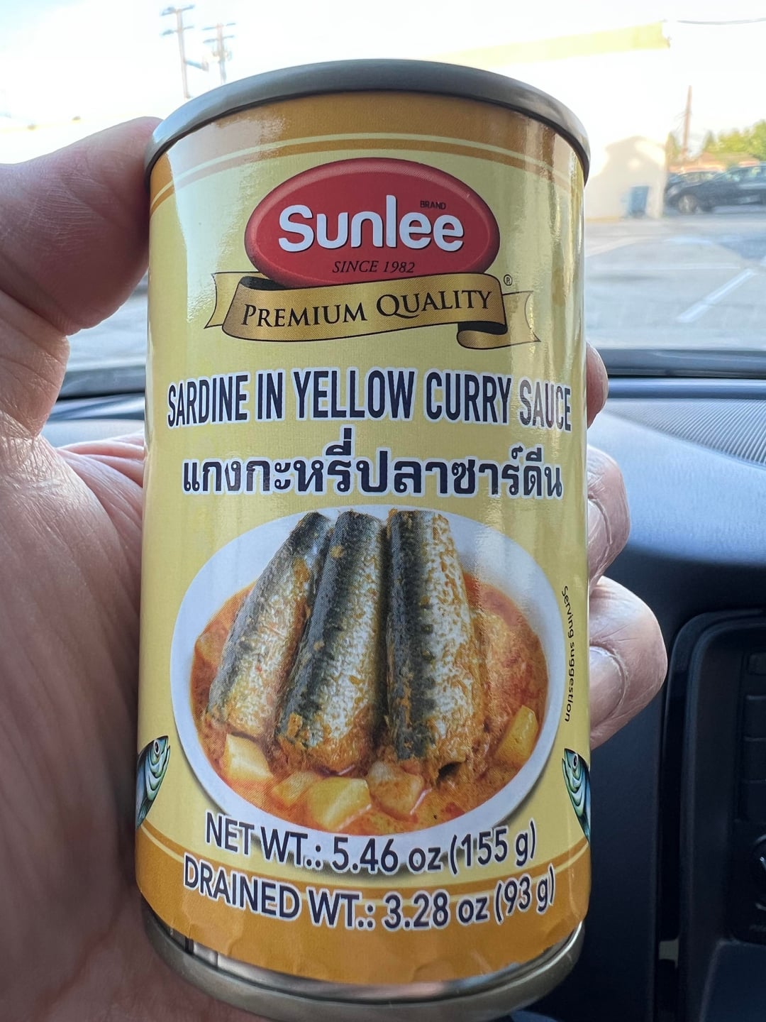 I don’t know if it was that exact brand, but Thai curried sardines are good stuff. I added a can of coconut milk and some frozen veggies for a good quick meal.