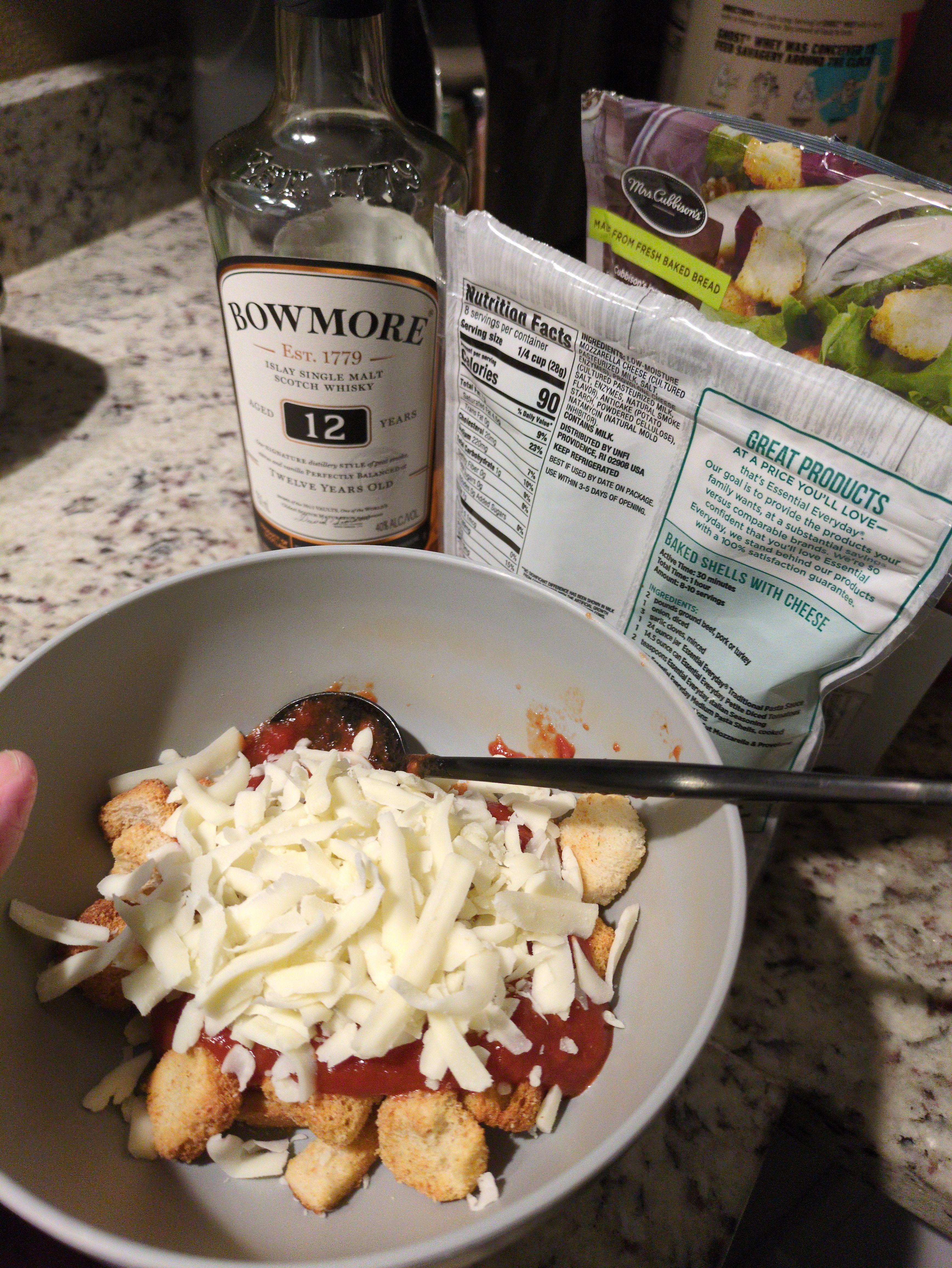 Share Facebook Twitter Pinterest LinkedIn Reddit Croutons. Leftover pizza sauce. Leftover pizza cheese….scotch. by DiShMiNiOn Dining and Cooking