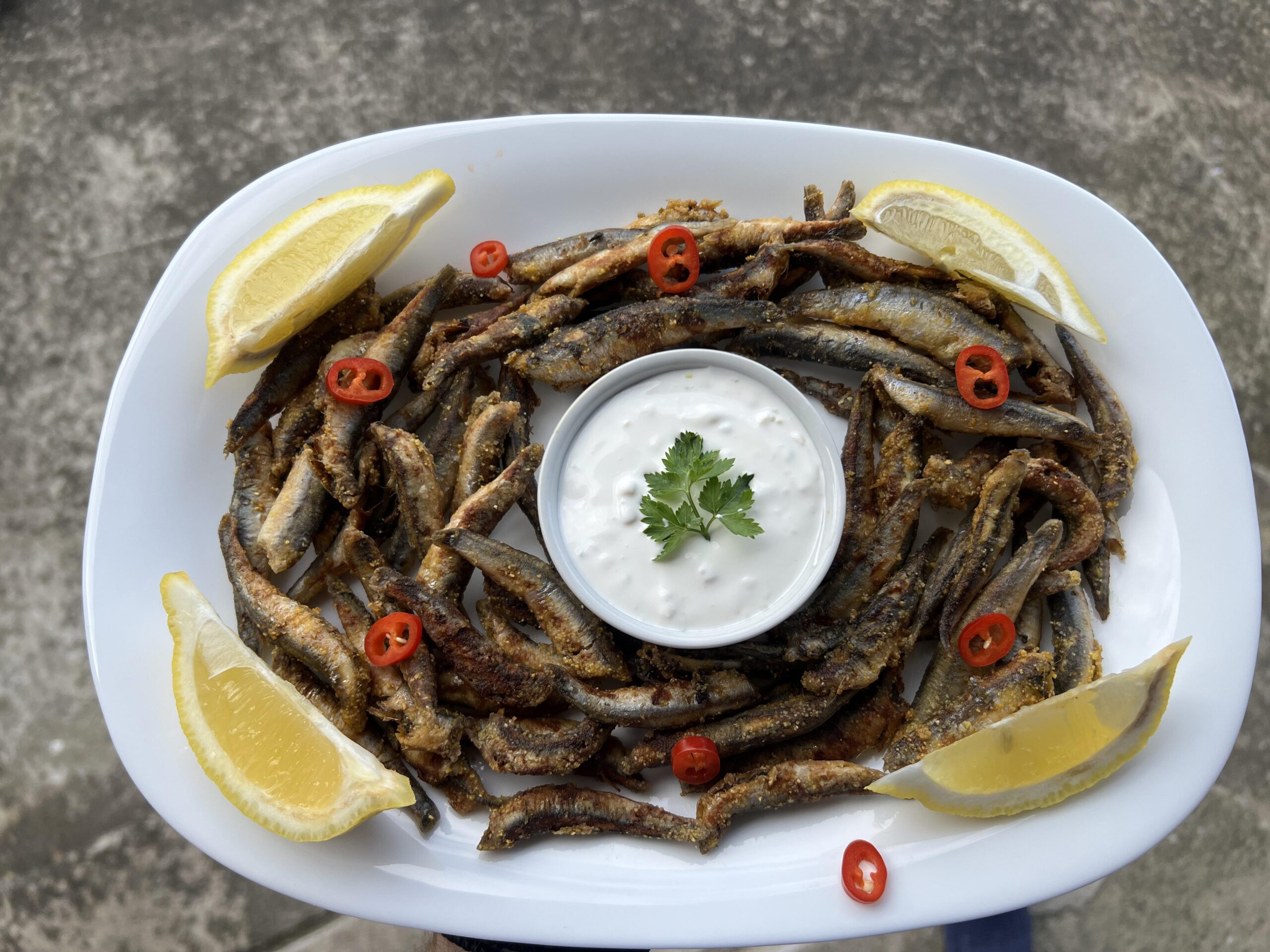 I had a plate of food like this on the beach at Lopud Island in Croatia once – fried tiny fish with lemon and garlic and a tall glass of slivovica – and it was so good that the memory keeps me awake at night, twelve years later