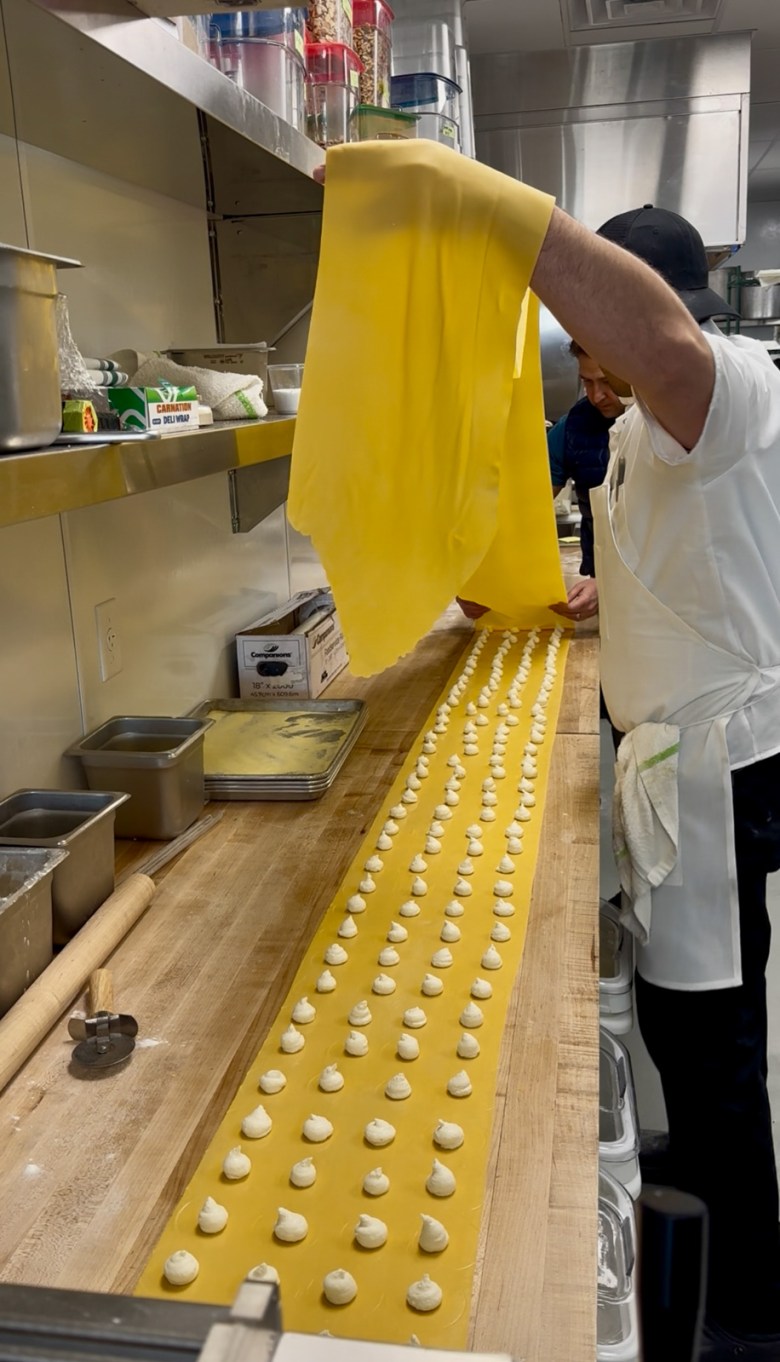 The painstaking process of egg yolk raviolos, at Willow OsteriaThe painstaking process of egg yolk raviolos, at Willow Osteria Credit: Vince Mancini