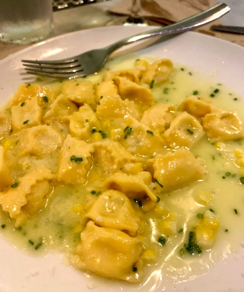 With a soft, creamy corn filling inside agnolotti pillows, served in a buttery reduction sauce with chopped chives, it’s a dish that sounds deceptively simple, something you might debate ordering at a restaurant where you can see cuts of meat sizzling over a wood-fired grill. Yet once you’ve had it, it’s hard to justify ordering anything else.
