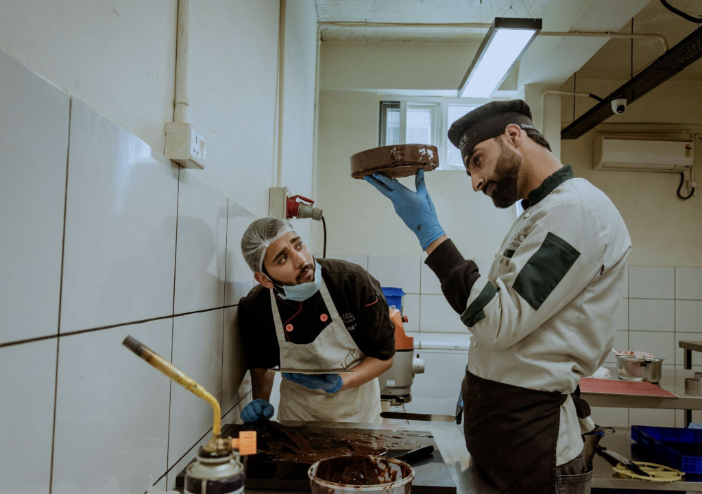 Back on the kitchen floor, Mir leads his team as trays of cakes and pastries take shape, demonstrating the technique himself, adjusting, refining and repeating, bringing the discipline learned in France into a distinctly Kashmiri setting.