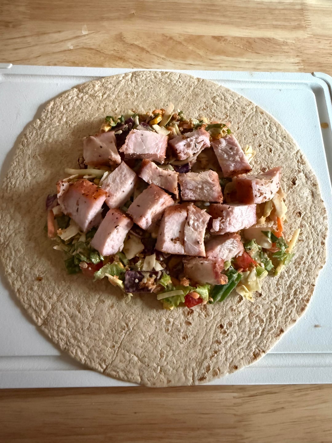 Last nights dinner of roasted garlic and herb bone in chops and today’s lunch with a Mexican street corn inspired salad.