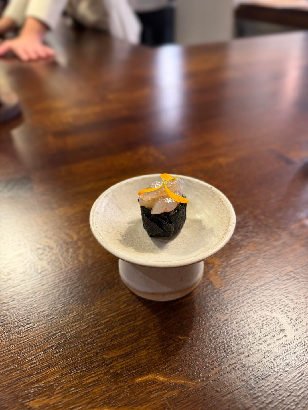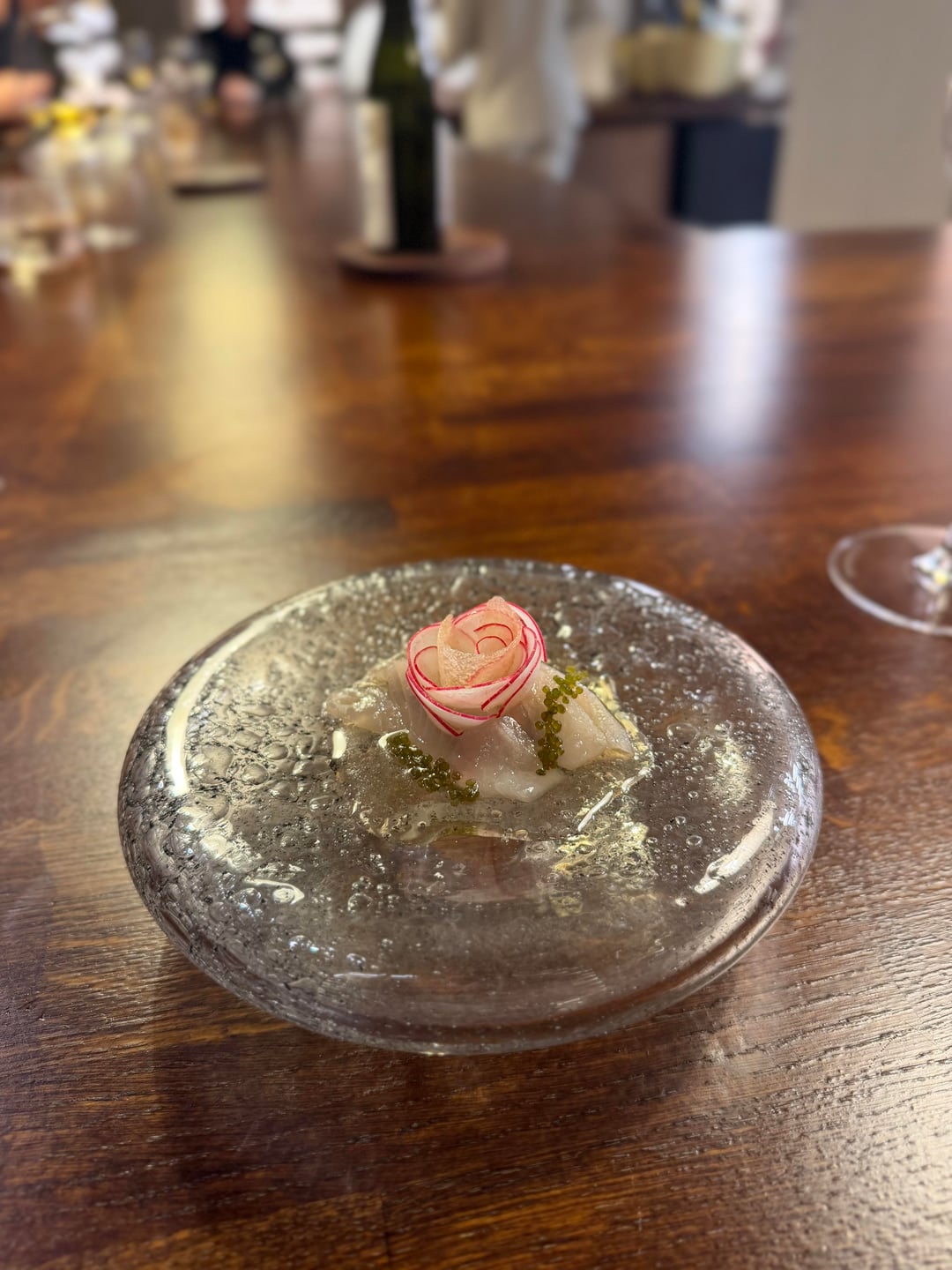 The service is nice, but impersonal and very scripted. I can see why this happens, especially in a newer restaurant with newer staff, but if you’re going to offer counter dining this has to come with a personal touch. There were only 9 people dining on the evening I was there and there wasn’t a particularly large effort from the wait staff to engage with anyone past giving them their food, including never asking if anyone liked a dish.