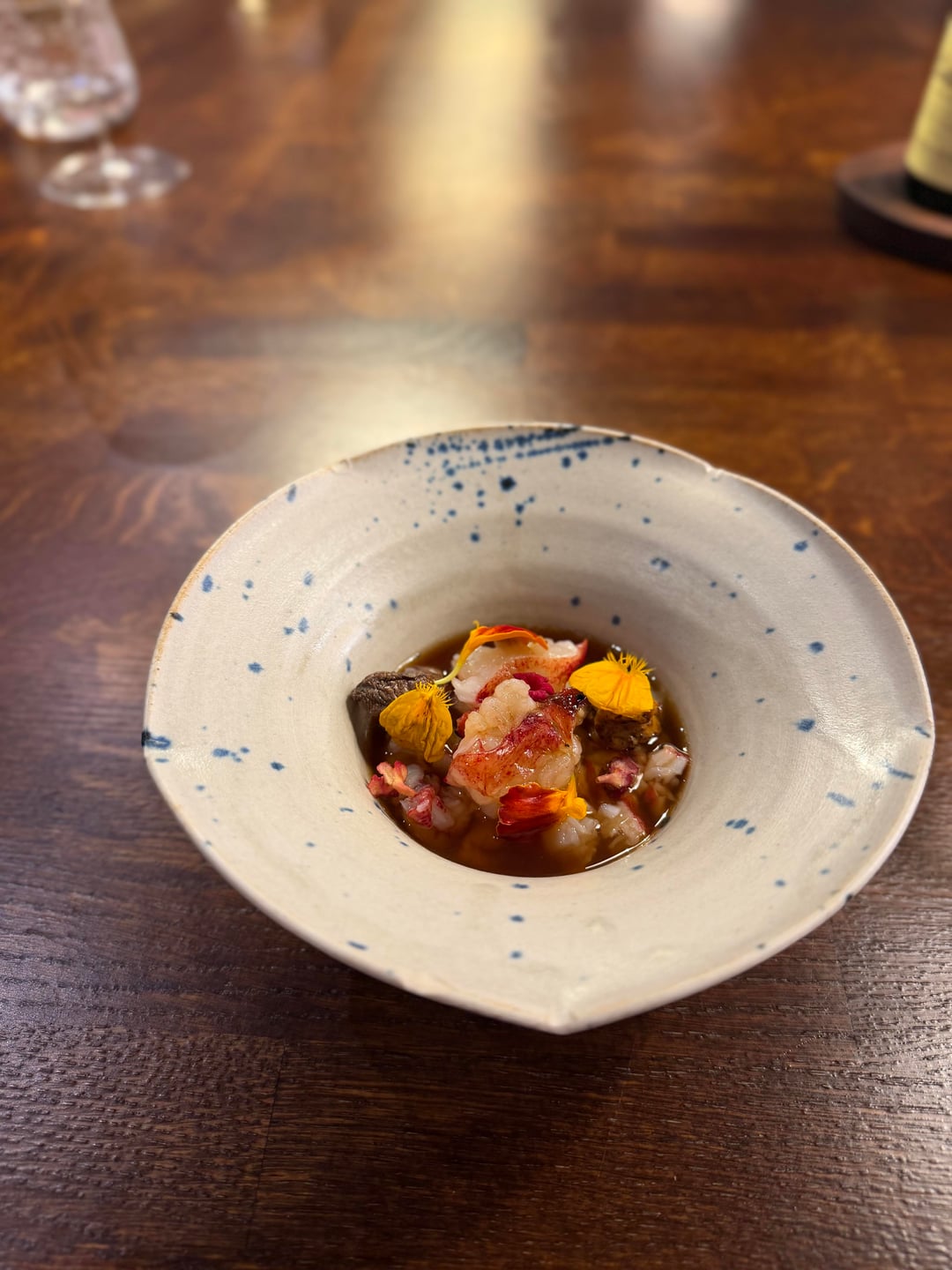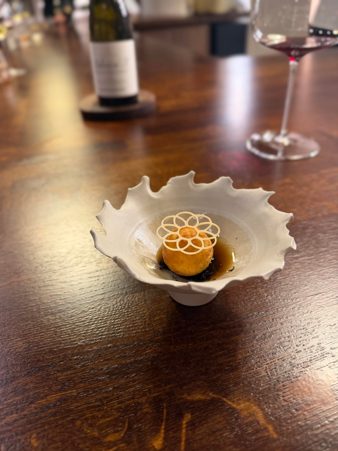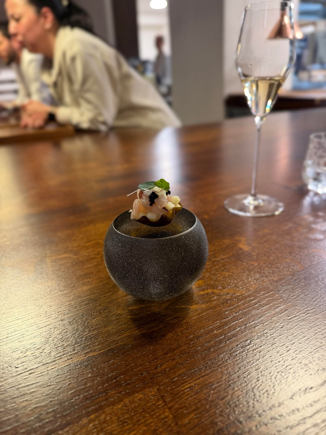 This leads me to the biggest 50/50 feeling of the night. The wine. The wine served in this restaurant is absolutely spectacular. It’s probably one of the best wine flights I’ve ever had. But, you are sold hard on it from the moment you enter. The person next to us was relentlessly pushed to switch from wanting her own glasses to a flight. What made this weirder then, was my friend wanted the cheapest option and I wanted the next up, but we were told we had to have the same…….why? You’re using a coravin???? For such a hard sell they talked themselves out of loads of money. We were the only two who had a wine flight that evening and every time we tried to ask a question about the wine we were brushed off. This was infuriating and again, doesn’t lend itself to counter dining at all.