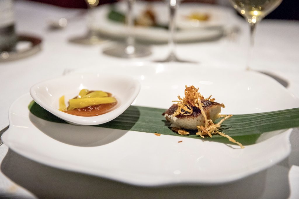The amuse-bouches – Maa Hor and Crunchy Rice Cakes with Crabmeat and Pickled Garlic – quickly washed away any doubts. Thompson’s cuisine plays with spices and consistencies not only with audacity but also with prudence. The Oysters and Smoked Fish with Shallots on Betel Leaves and the Steamed Curry of Scallops with Thai Basil and Kaffir Lime Leaves put on the table – literally as well – refreshing flavours and unfamiliar levels of crunchiness (in the former) and sauciness (in the latter – no pun intended).