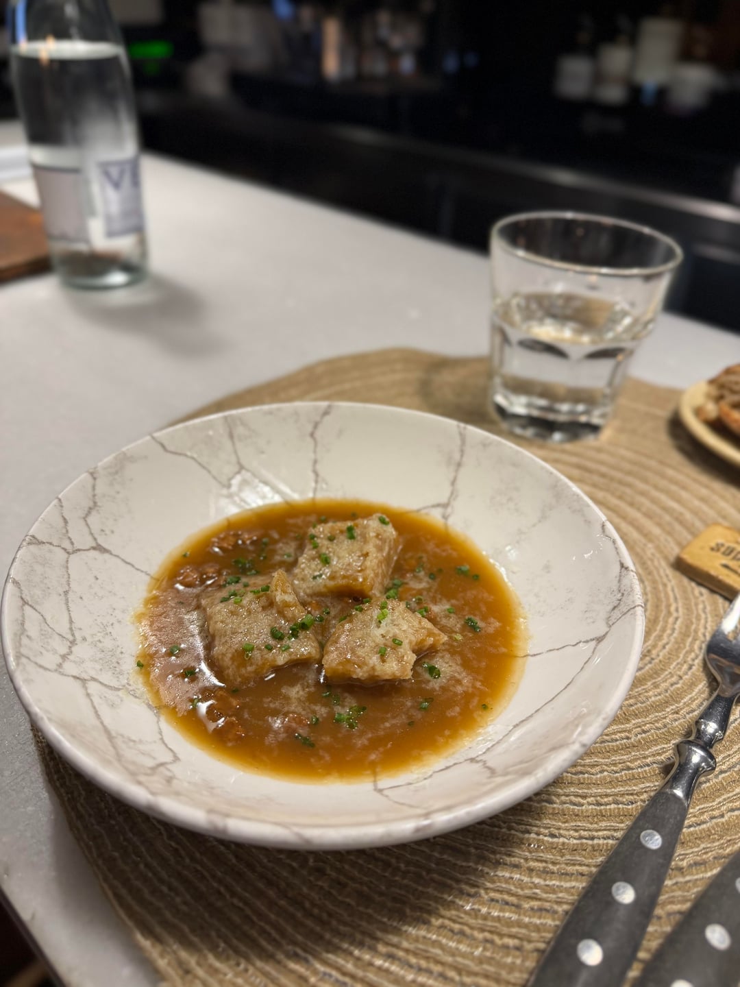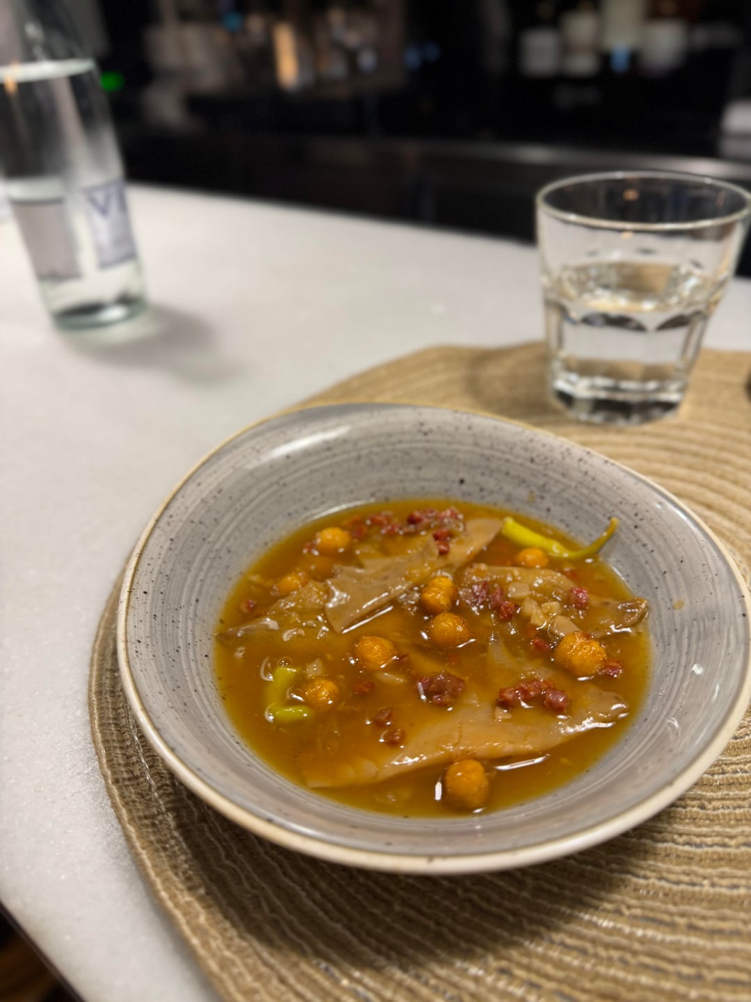 So onto the food – what I loved about Suculent is that most dishes are very familiar, but are given a twist or modern technique that arguably takes them to the next level. There’s simplicity on the surface of everything, but the flavours impart none of that. Squid and pork jowl is fresh as you like and just melts in the mouth. An oyster is equally as fresh, but punchy with flavour and delicious to the max. A cep mushroom custard is deep in flavour and balanced beautifully with saline sea urchin. A roasted duck croquette is unassuming in everything other than its flavour. Prawn ceviche with chicharron is buzzing with citrus and the prawns are absolutely divine. The star of the show is a beetroot and caviar dish with smoked eel and caviar and brown butter sauce – it is utterly terrific and a perfect balance of everything you need from a dish. French onion soup is unctuous and moreish. The Spanish stew is littered with incredible crispy chickpeas and chorizo, but made from chicken crowns rather than the usual cow tripe – unusual but it most certainly worked.