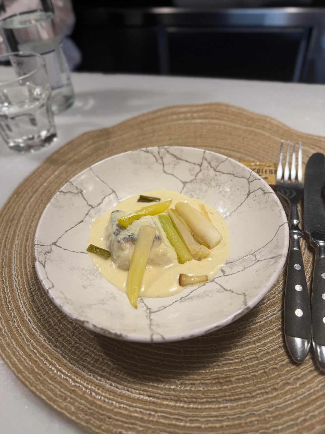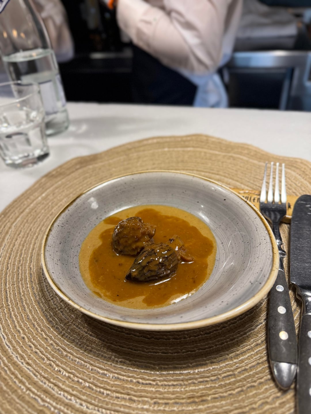 Carrying on, artichoke with butifarra sausage is deeply savoury and comforting. A beef tartare comes with tiny potato souffles, atop a grilled bone marrow that you can drag it through – utter perfection. Seasonal morels come stuffed with duck and served with an armagnac sauce. An incredible masterclass in deep flavour. The mains are a lovely hake in pilpil sauce and then an exceptional hare dish with coffee and capers. Desserts don’t let up either: there’s a tremendous kiwi millefeuille and a chocolate rum cake with cream that I forgot to photograph.