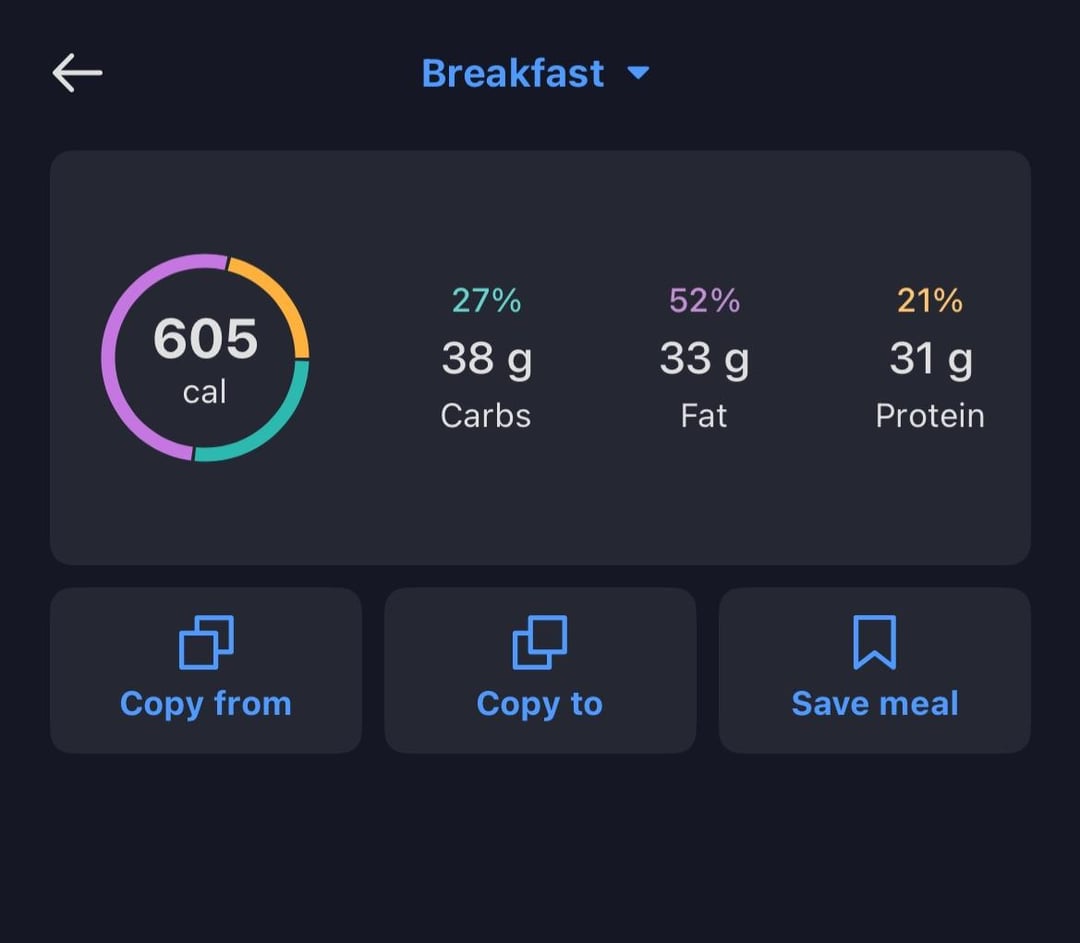 I have a 90 day streak on MFP but I totally lost steam with my healthy habit maintenance (including tracking my protein and fiber) this past month and stagnated a bit. one of my bad habits is skipping breakfast out of laziness and grazing on random carbs til lunch (which prevents me from meeting my protein and fiber goals). so today I’m proud of myself for making a high protein (31g), high fiber (13g) breakfast! 🙂