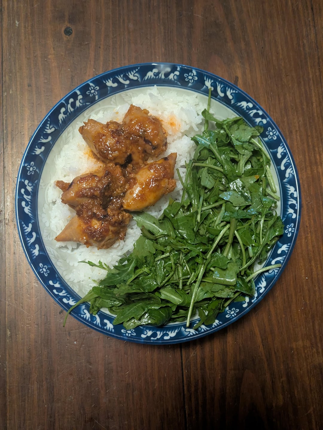 Pic 4: served on top of jasmine rice with all the juices alongside arugula dressed with balsamic vinegar, salt, and olive oil.