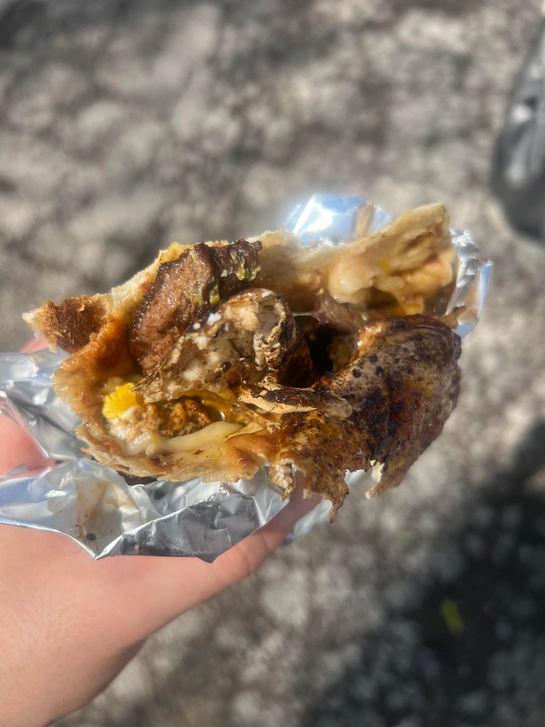 Wrapped it horribly but the foil helped a lot. Super delicious and hearty breakfast on the go to start the day🙏🏼 And yes I cleaned my stove top afterwards lol