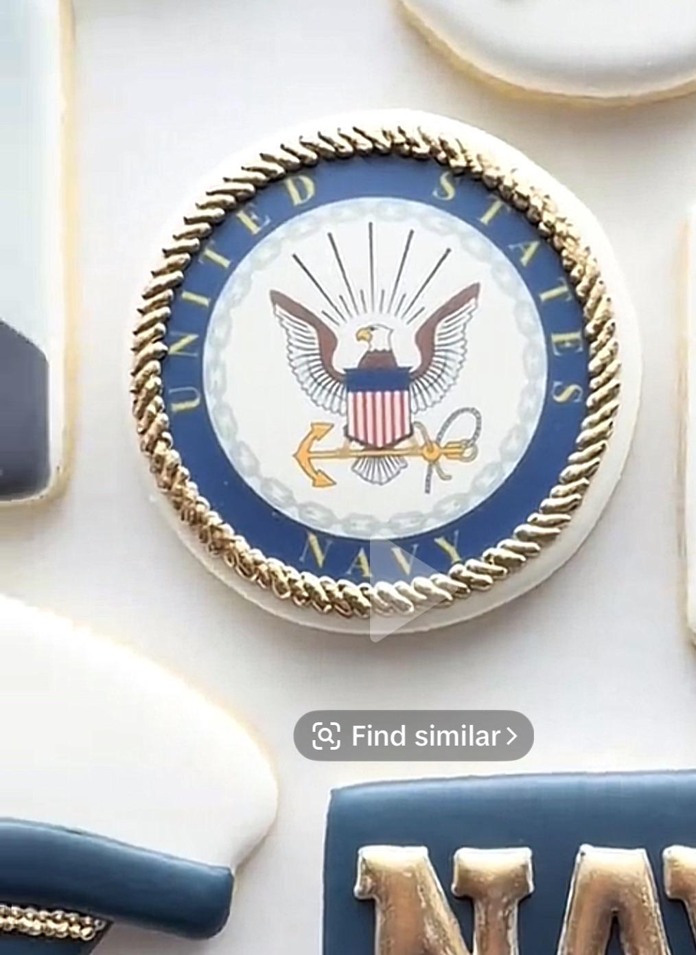 I am an “once in a blue moon” cookie decorator. The most intricate element of my cookies were gold luster dust. That is to say, I’m not very knowledgeable on how to accomplish some results I see out there. I want to make some cookies for a special occasion and the theme is the US Navy. I saw these on Google and am wondering how that is done. It looks like a printed photo of the US Navy flag. Is there such a things as en edible sticker? And where does one go to have that done?