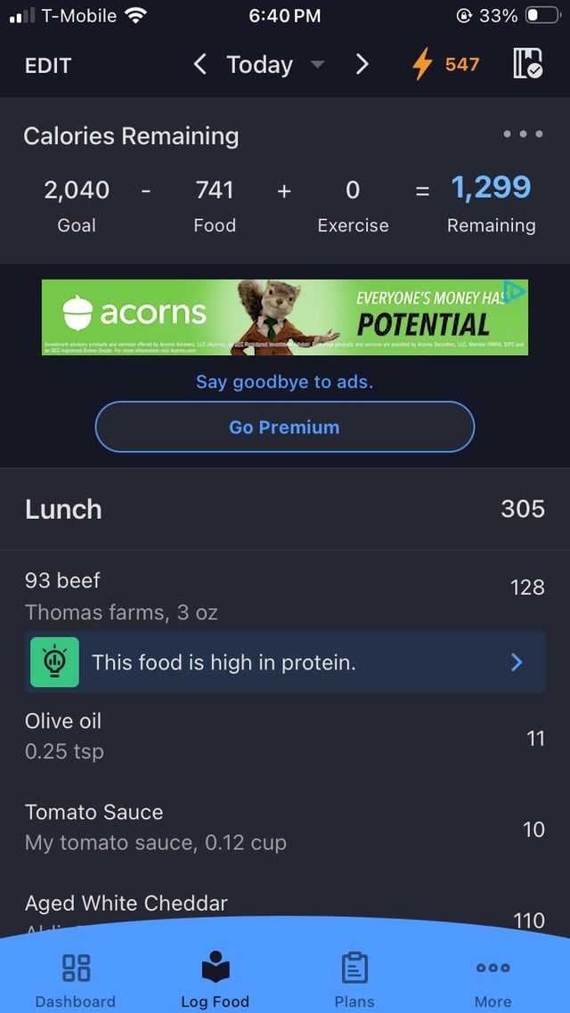 305 calories lunch