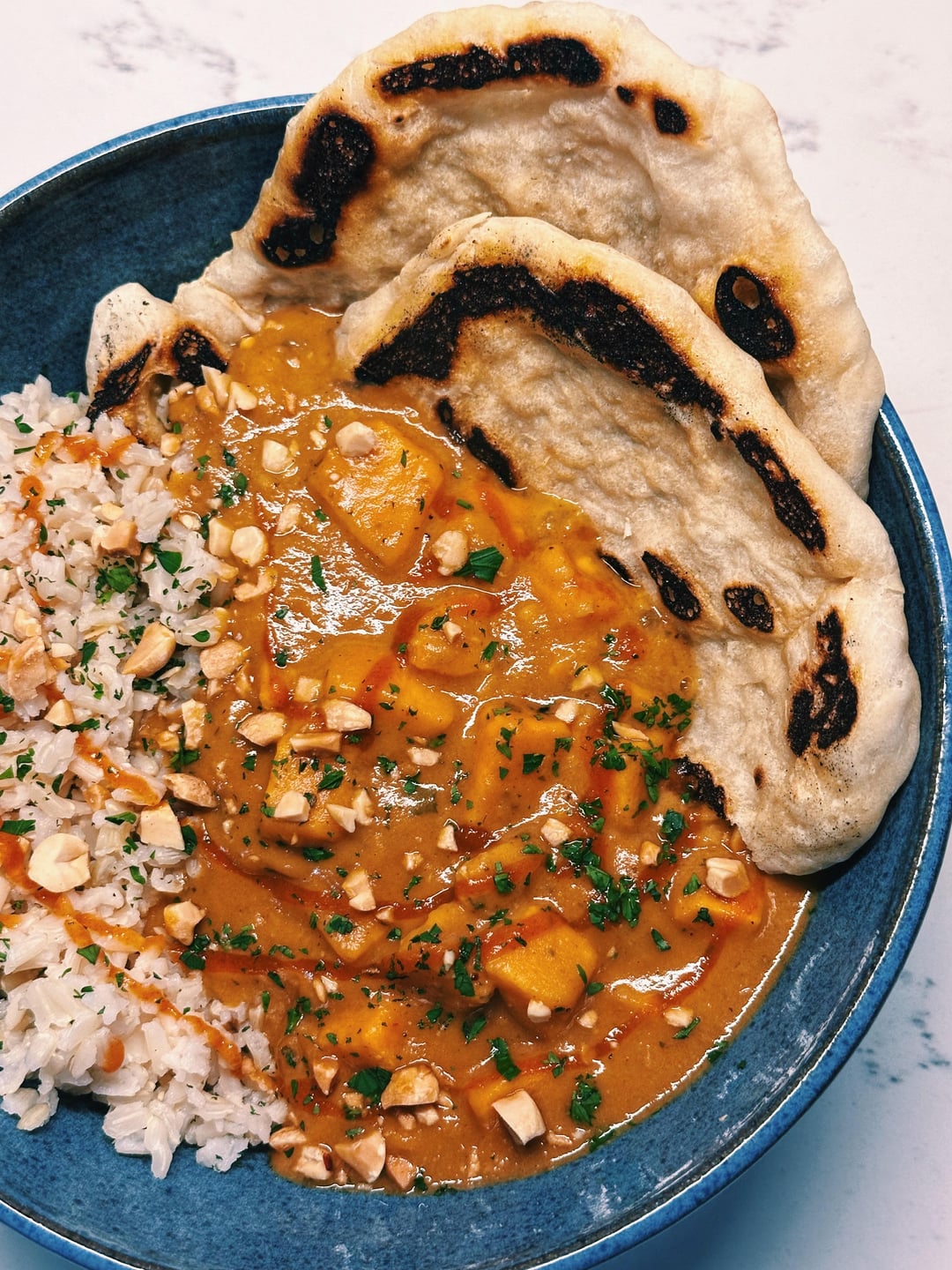 maafe – also known as african peanut strew! served with brown rice + homemade naan