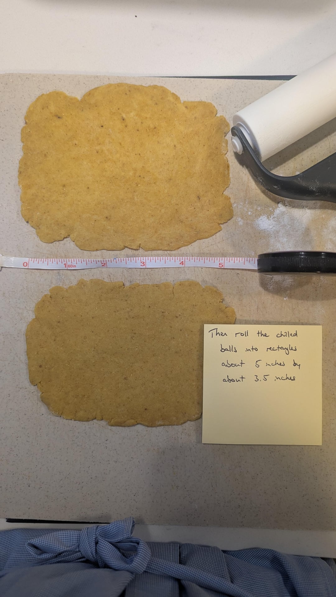 Then roll the chilled balls into rectangles about 5 inches by about 3.5 inches