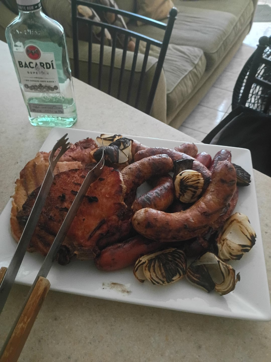 Share Facebook Twitter Pinterest LinkedIn Reddit Switched it up with some white rum, fired up the Weber Jr and grilled some Brazilian style chorizo, some Johnsonville smoke bratwurst and some smoked pork chops. Then I pulled the whatnot on those onions. by Jax72 1 Comment Mother-Valuable7568 4 days ago I love grilled onion. Thanks for sharing.