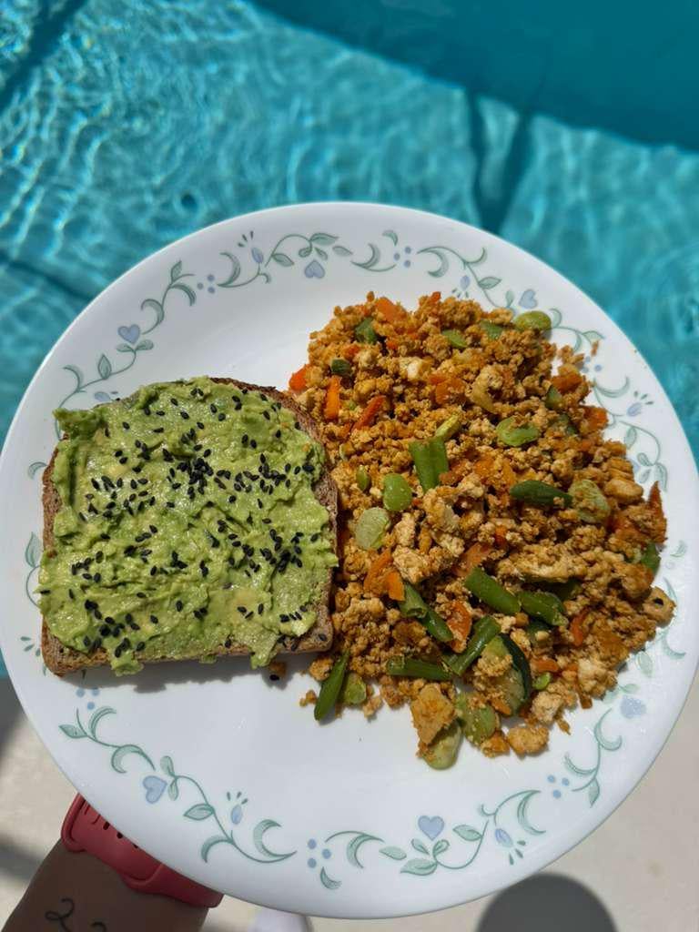 Share Facebook Twitter Pinterest LinkedIn Reddit Tofu scramble with mixed veggies, nutritional yeast, Ezekiel bread with avocado and sesame seeds (35G of Protein) by ConsciouslivwithALI 5 Comments build_bear677 7 days ago looks so good enjoy it!! and that pool in the background is such a vibe GreenMountain85 7 days ago That looks absolutely amazing and I think I’ll be stealing this meal idea very soon! birdseye-maple 7 days ago But you vegans, what about protein??? /s Borkato 7 days ago This actually looks so good wtf VeganFatboy 7 days ago Ezekiel bread is the bomb!
