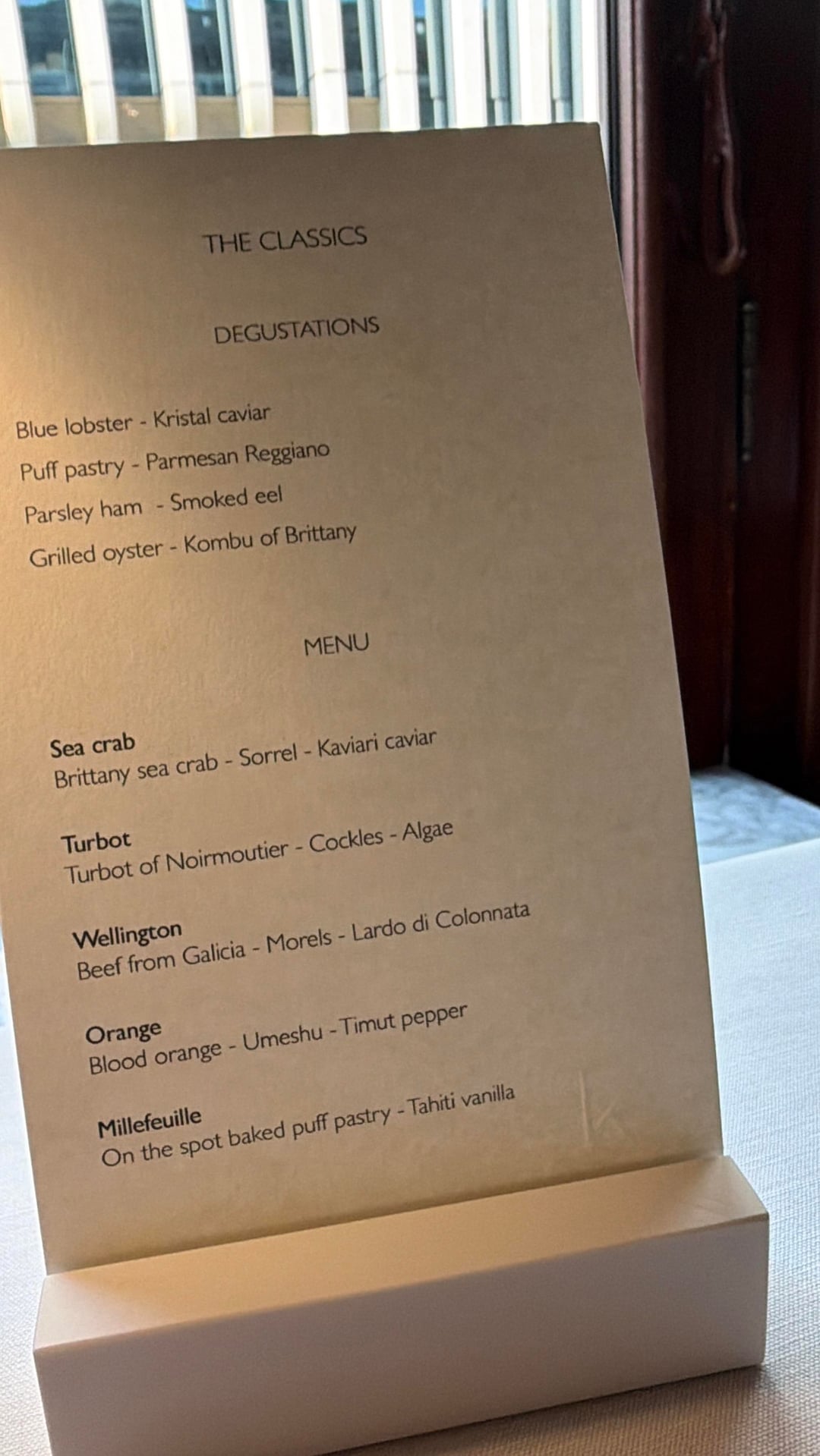 Food was great, the low was the oysters but I’m not a fan of oysters and the high was the Wellington.