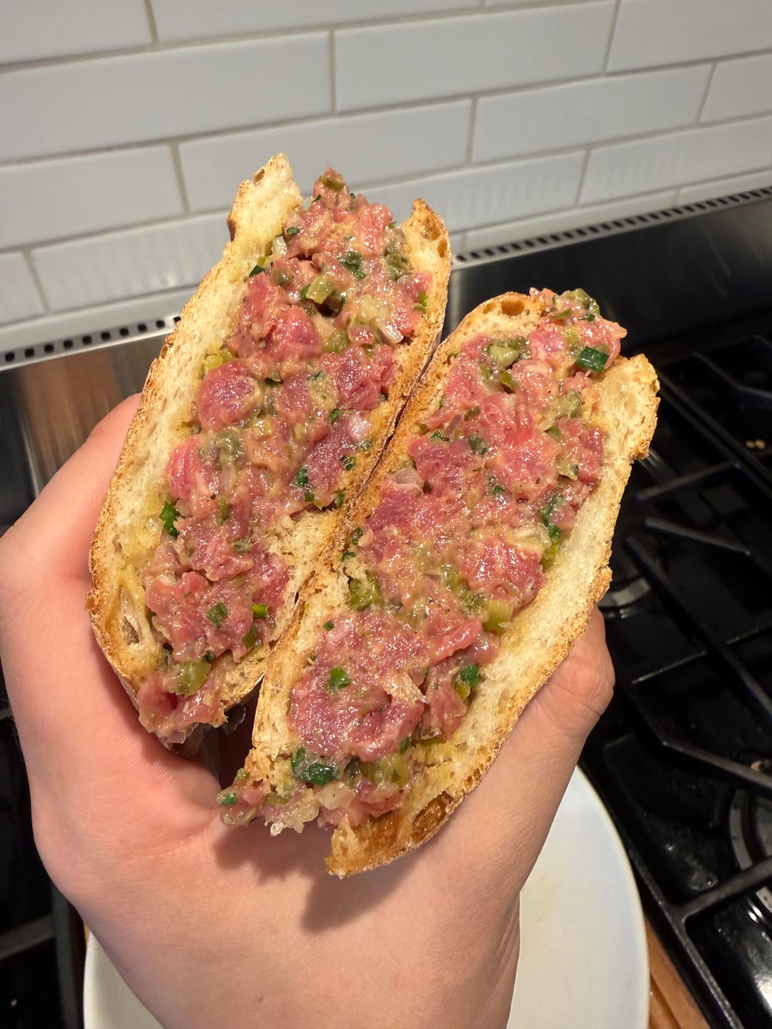 PussPussMcSquishy 16 hours ago Genuinely curious, how is steak tartare or a sandwich like this not downright bad for you to eat?
