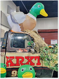 KRXT 98.5’s “Big Tex” truck proved a hit at the ninth annual Food Dudes decorated as a duck blind complete with several large inflatable ducks.