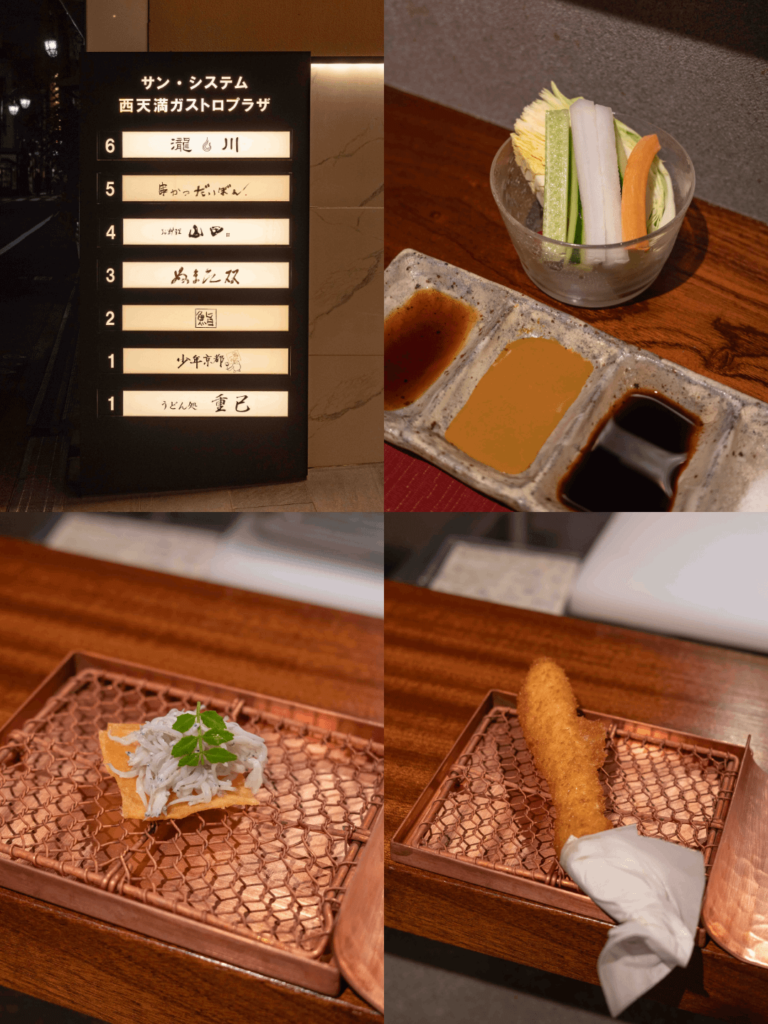 While I haven’t been to A-bon (invitations are more than welcome 😜), I’d describe the skewers here as having a touch of nonchalant finesse. The ingredients are certainly of excellent quality and Chef Izumitani thankfully doesn’t hide the effort he put into sourcing them. The whole fried leg of a snow crab (ズワイガニ) [pic 1, bottom-right] and beef fillet [pic 2, bottom-left] was certainly a statement for a ¥16,500 course, and the intensely sweet and earthy spinach root (ほうれんそうの根) [pic 4, top-right] was perhaps the best fried veg of the trip, which is no small feat given I visited Numata (ぬま田) the day before. The choice to use the spinach leaf in the mini soba that followed [pic 4, bottom-left] as a palate cleanser was a touch of brilliance; an intermezzo like this is much appreciated in a long course of fried skewers.