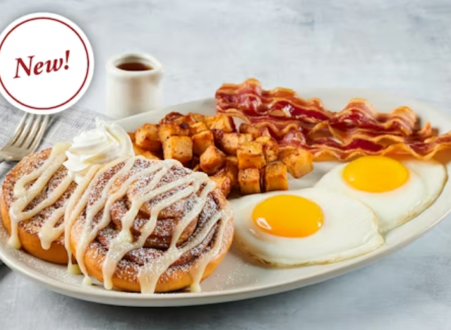 Denny’s Berry Stuffed Slam is a hit with diners. Each order comes with four slices of Brioche French Toast stuffed with sweet cream cheese filling and topped with strawberries, strawberry sauce, and powdered sugar. The Berry selection is based on seasonality. “This was delicious! Has anyone else tried this yet? Menu said it was new but not sure how new as it’s been a while I’ve been to Denny’s. It’s 4 slices of French toast stuffed with a sweet cream cheese filling for $7.49 (I didn’t order eggs or anything else as I knew this was going to be a big plate,” a Facebooker confirms.