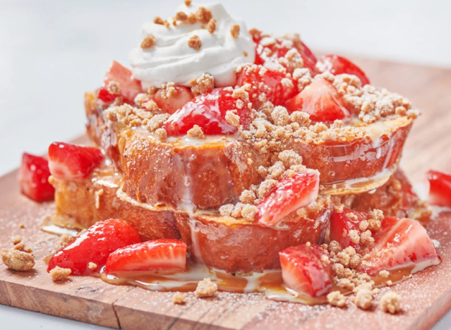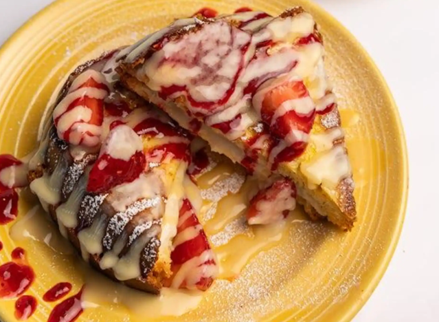 What is even more indulgent than an order of French toast? Well, an order of stuffed French toast, of course. There isn’t a one-size-fits-all approach to the dish. Some restaurants literally stuff the insides of a piece of bread with anything from fruit to cream cheese filling, while others sandwich the filling between two pieces of batter-soaked and griddled bread. Either way, it’s delicious and not-so-good-for-you in the best way possible. Where can you get the most delicious option? Here are 7 chain restaurants serving the best “stuffed” French toast, according to diners.