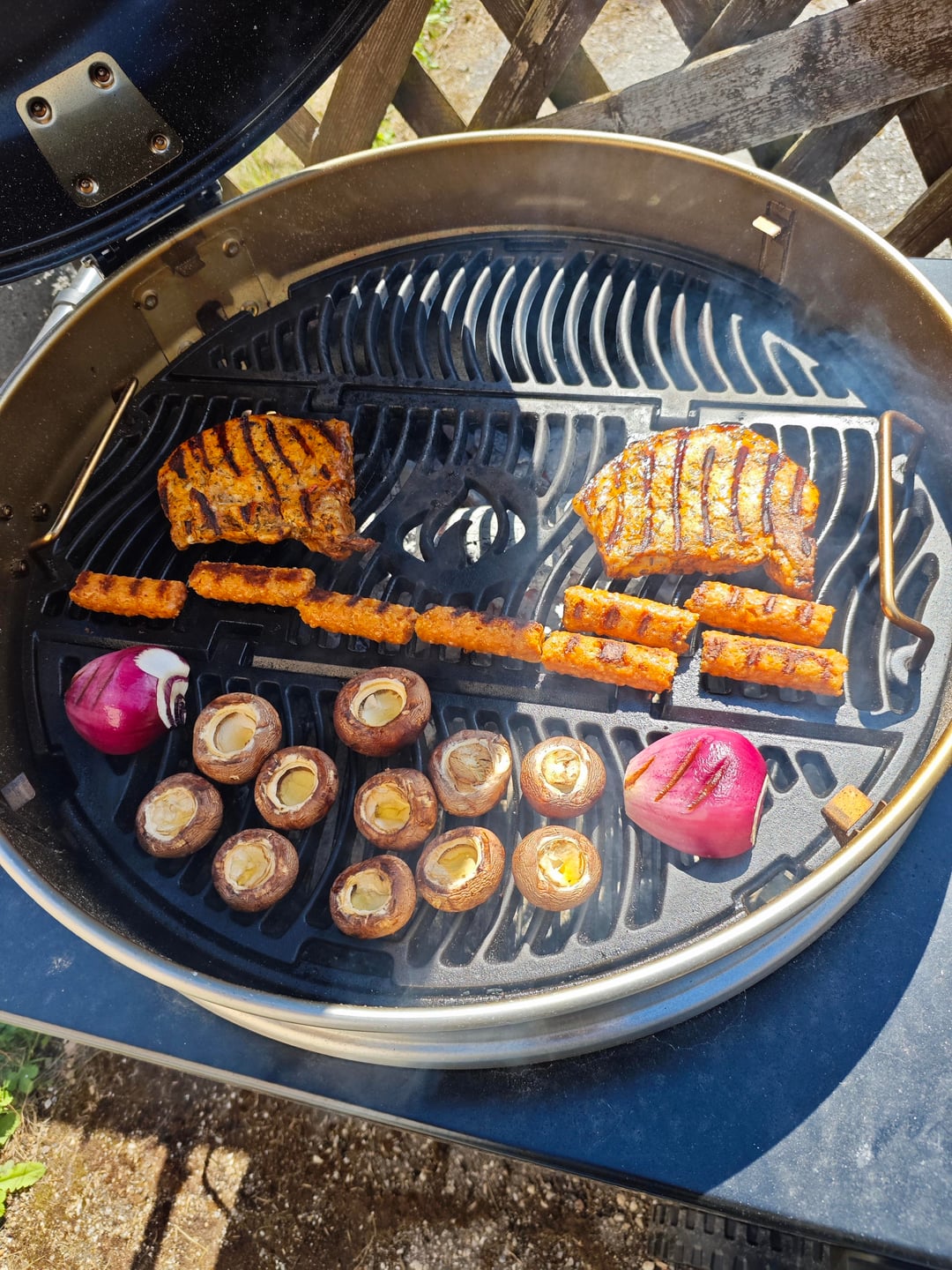 Pork, "cheese grillers", mushrooms and onion on my Napoleon Pro22 on the cast iron grate over coalsby wtfitaut 2 Comments BBQTestPit 20 hours ago What kind of grate is that? ilovetacos48 17 hours ago Looks great! I love my Napoleon grills.