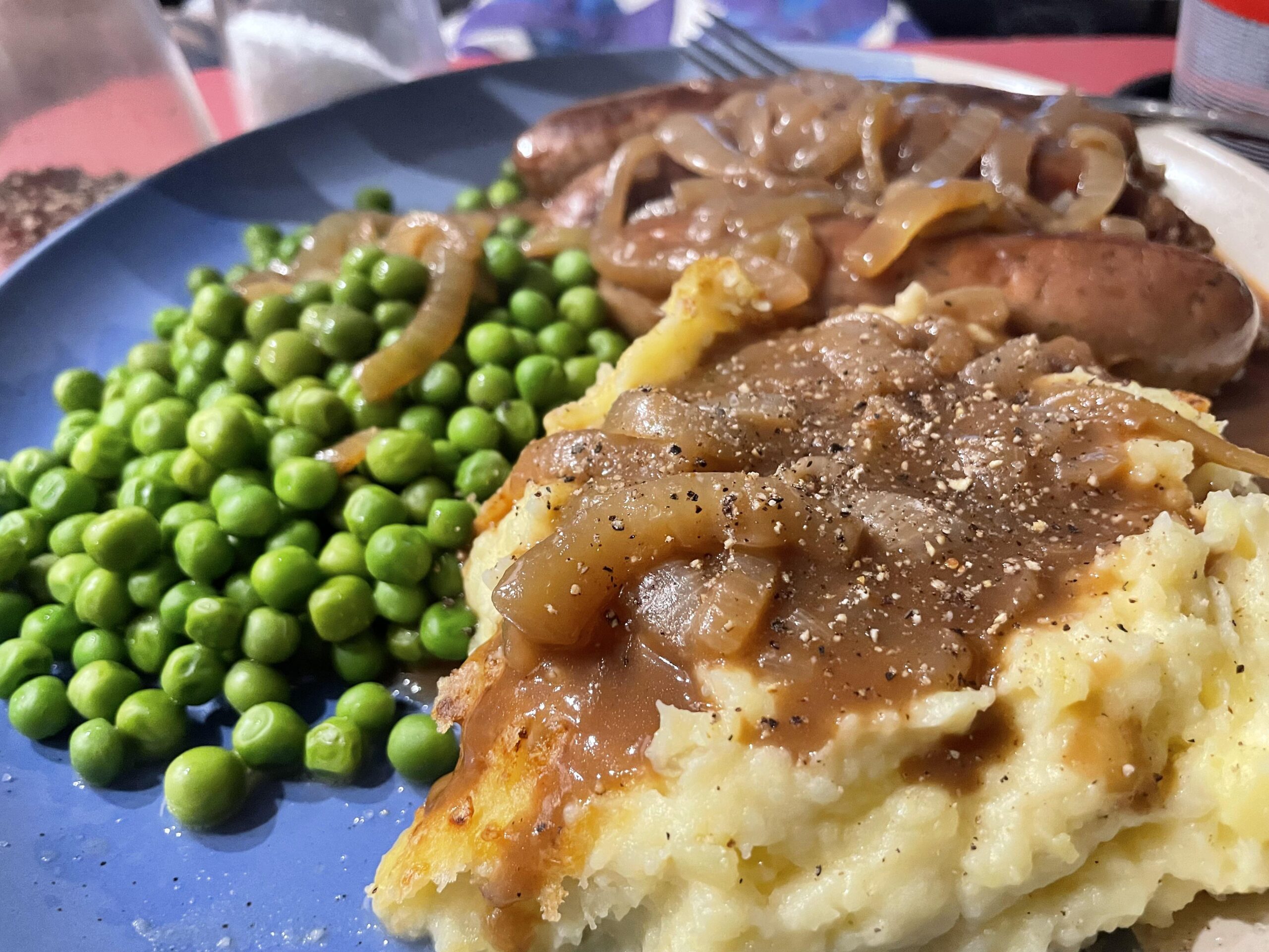 Sausage $9 from butcher Potatoes $4Onion $1Gravy stock $3Frozen peas $3Serves 4SO tasty!by elf1980 1 Comment _noho 15 hours ago Do people just buy gravy? Is it any good if so? I don’t know what gravy stock means